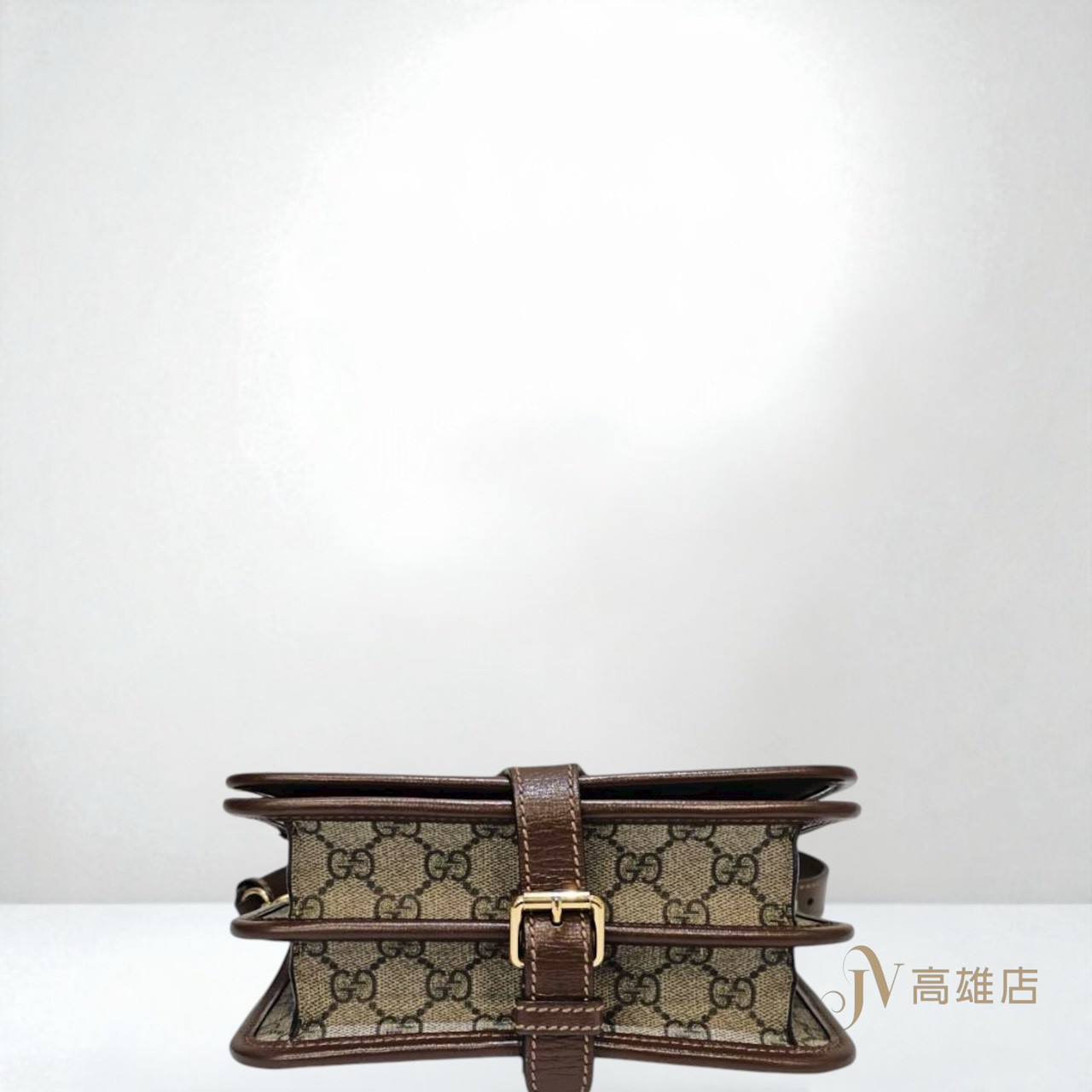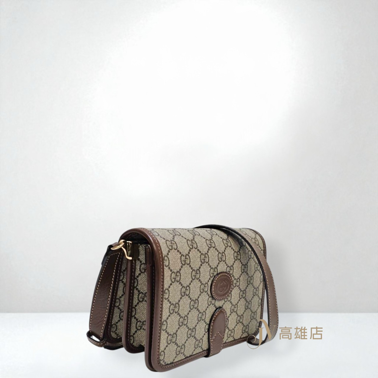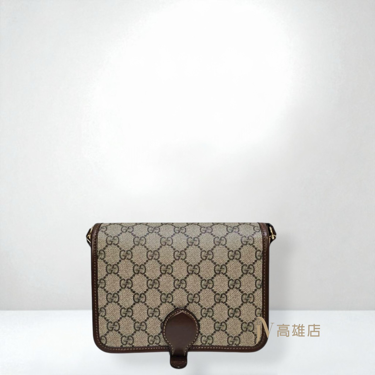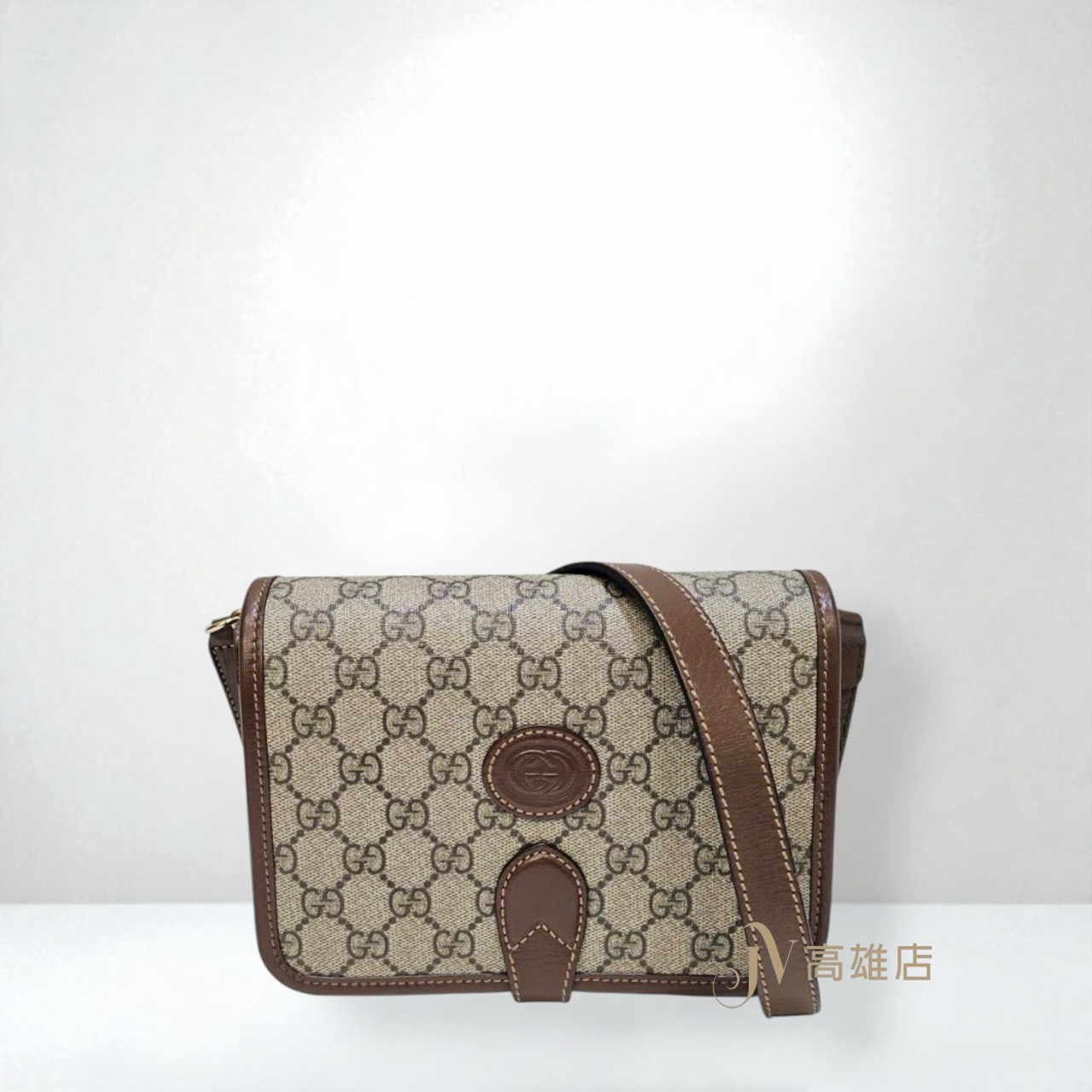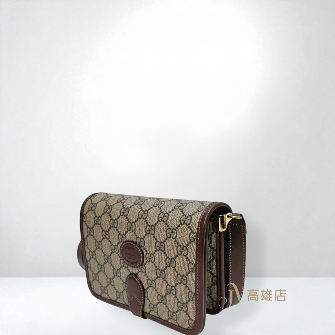 JK1713 Gucci包包 PVC咖牛皮金釦Retro InterlockingGG Mini下蓋插釦式斜背包(高雄店)