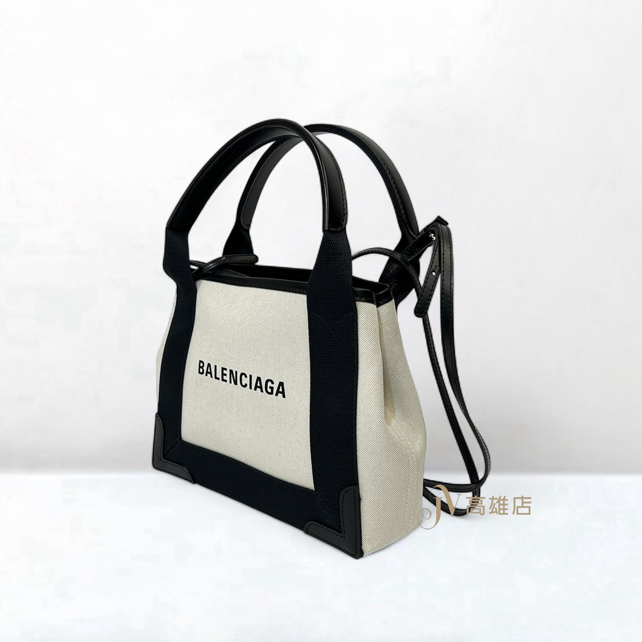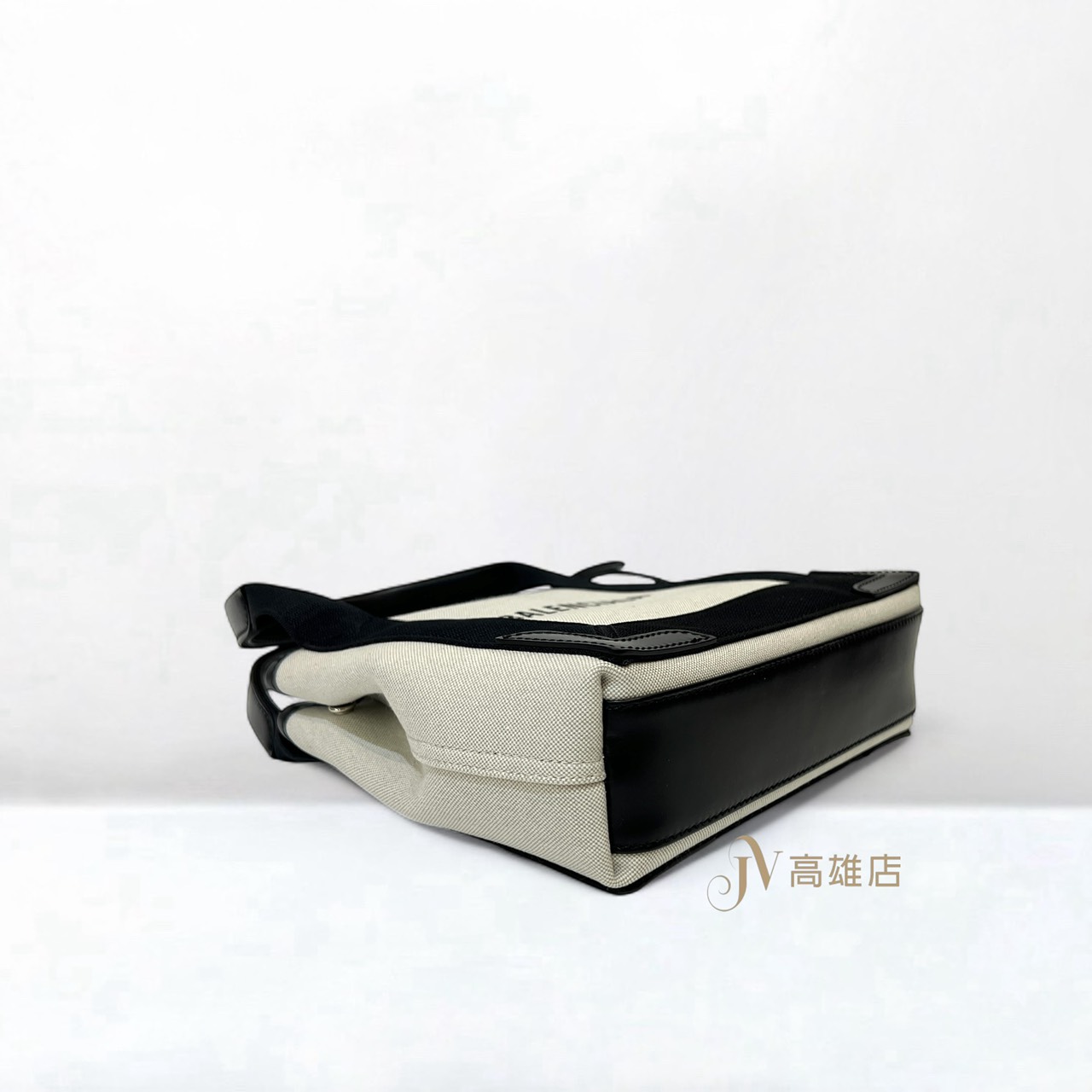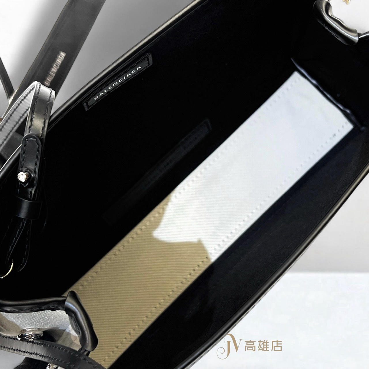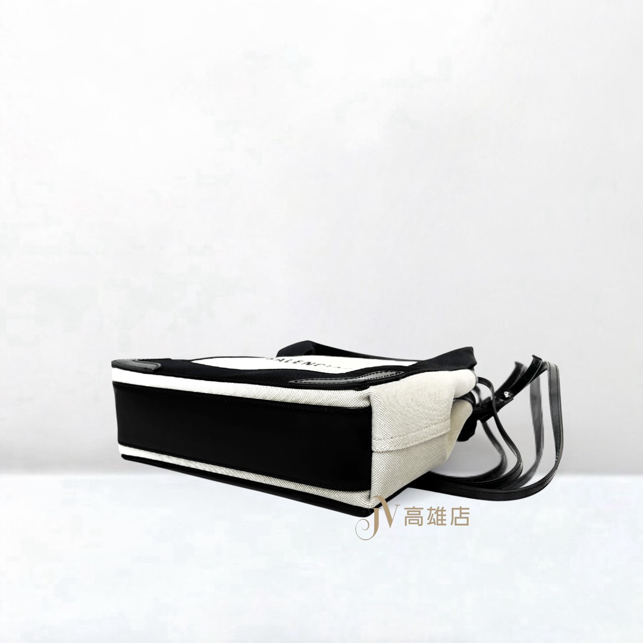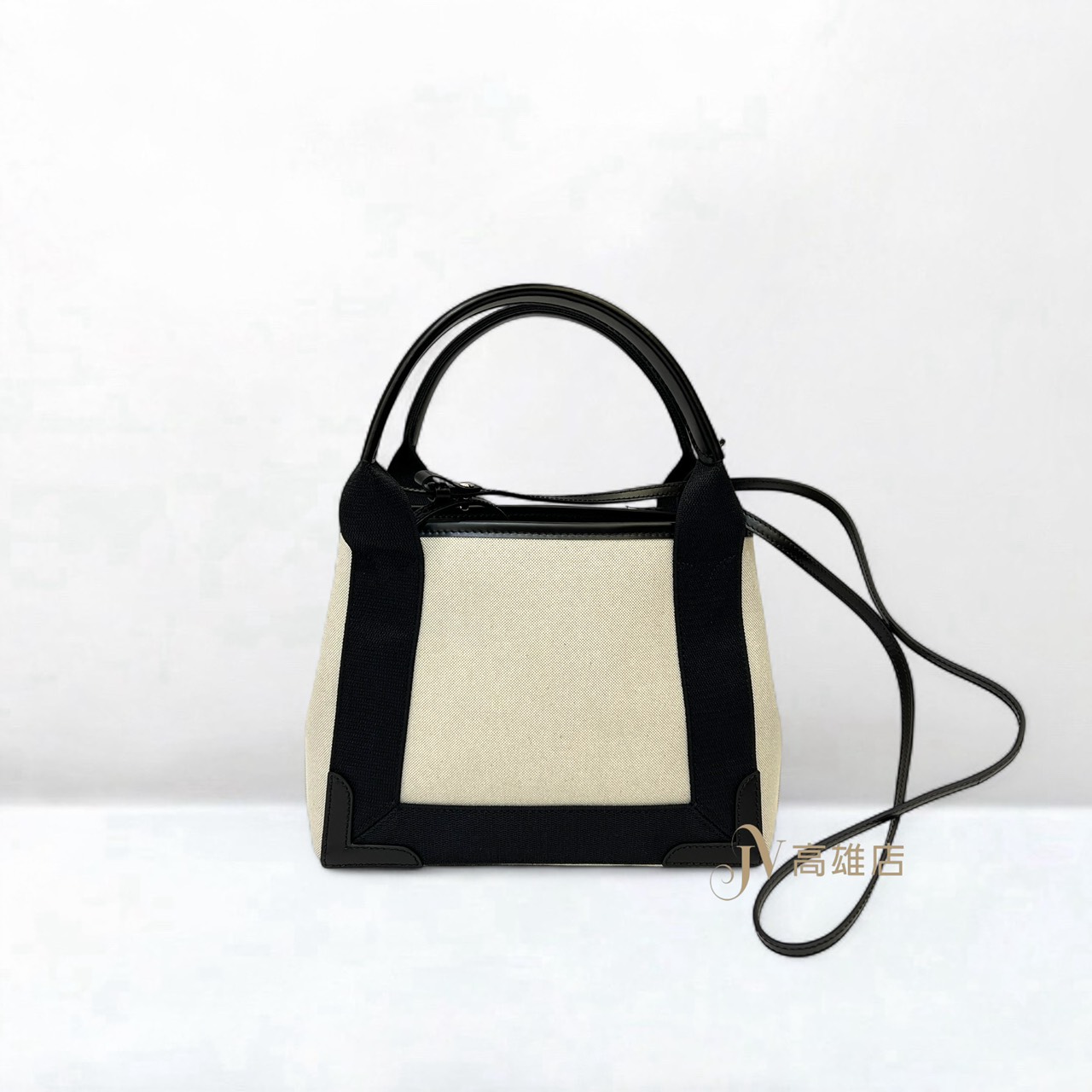 JK1830 Balenciaga包包米帆布拚黑牛皮銀釦Navy Cabas XS手提斜背包(喬萱高雄店)
