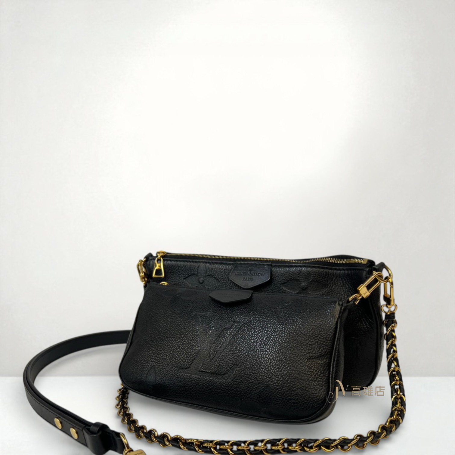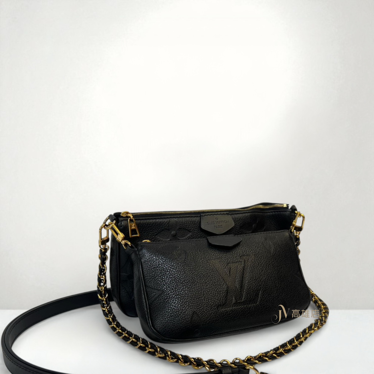 路徑: 首頁 / 精品賣場 / LV / LV-包款 / JK1984 LV包包 黑牛皮壓紋金釦MultiPochetteAccessoires二合一肩斜背包 M80399(高雄店)...
