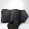 JK2019 LV短夾 海軍藍牛皮壓紋金釦6卡三折短夾M64577(高雄店)