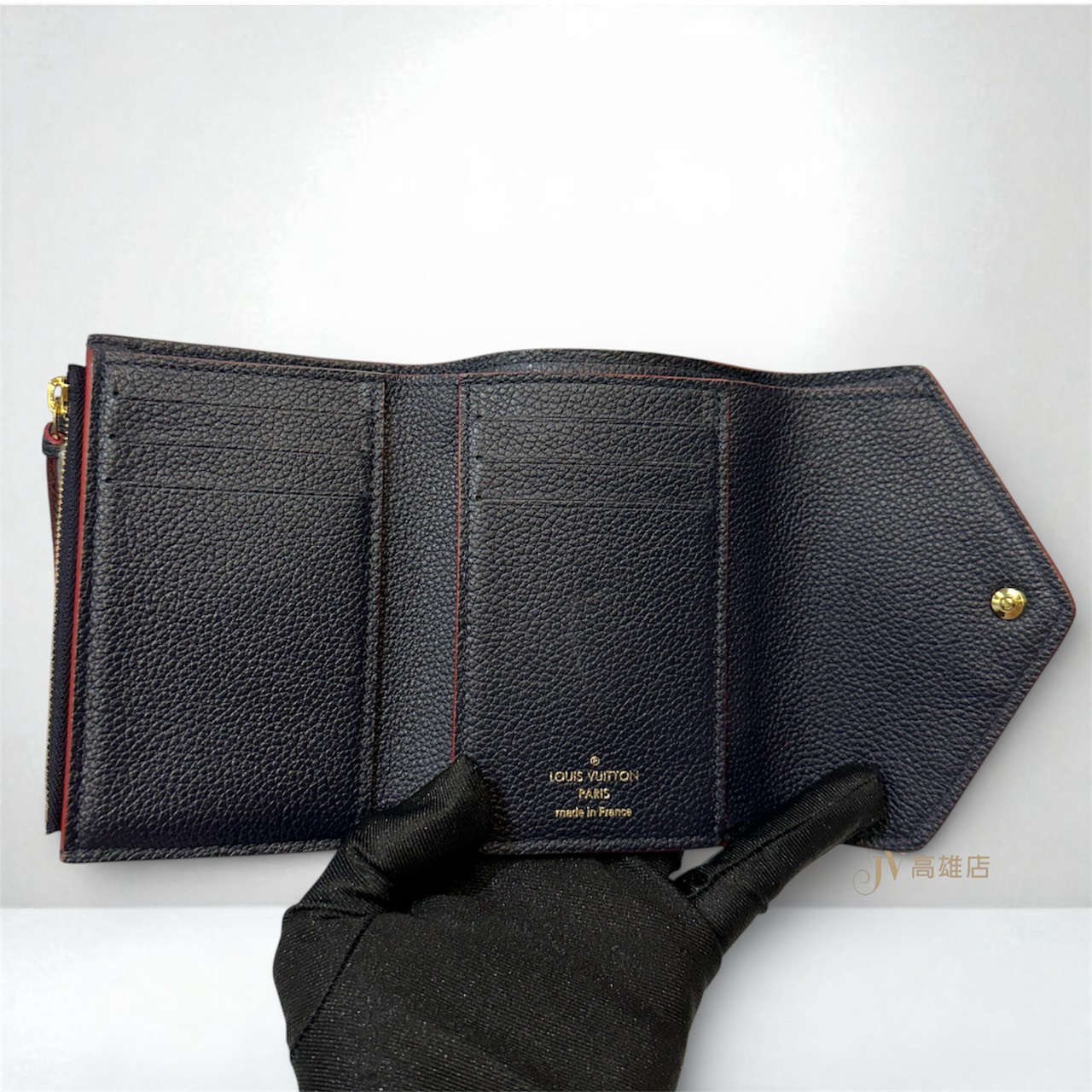 路徑: 首頁 / 精品賣場 / LV / LV-錢包及小型皮件 / JK2019 LV短夾 海軍藍牛皮壓紋金釦6卡三折短夾M64577(高雄店)...