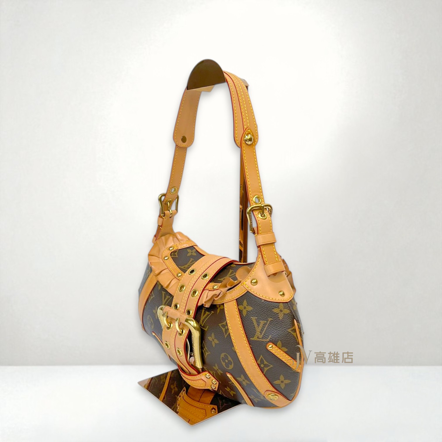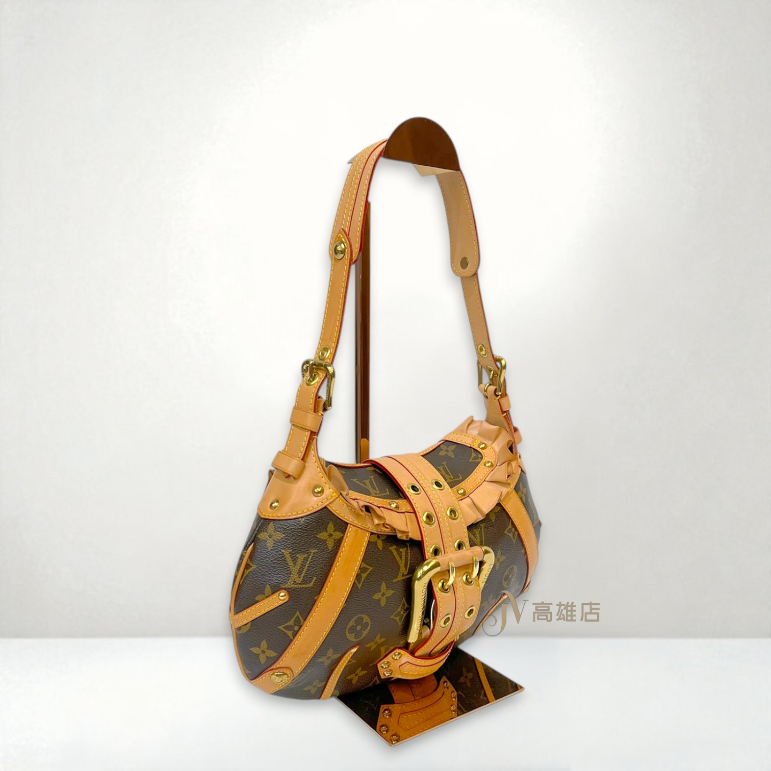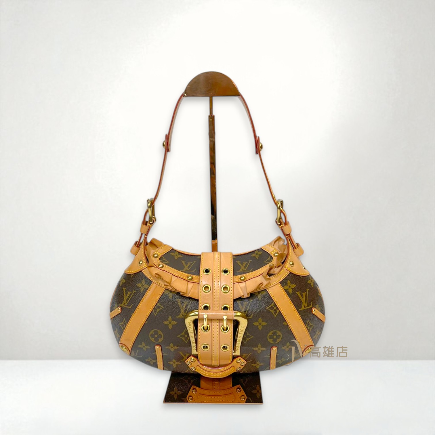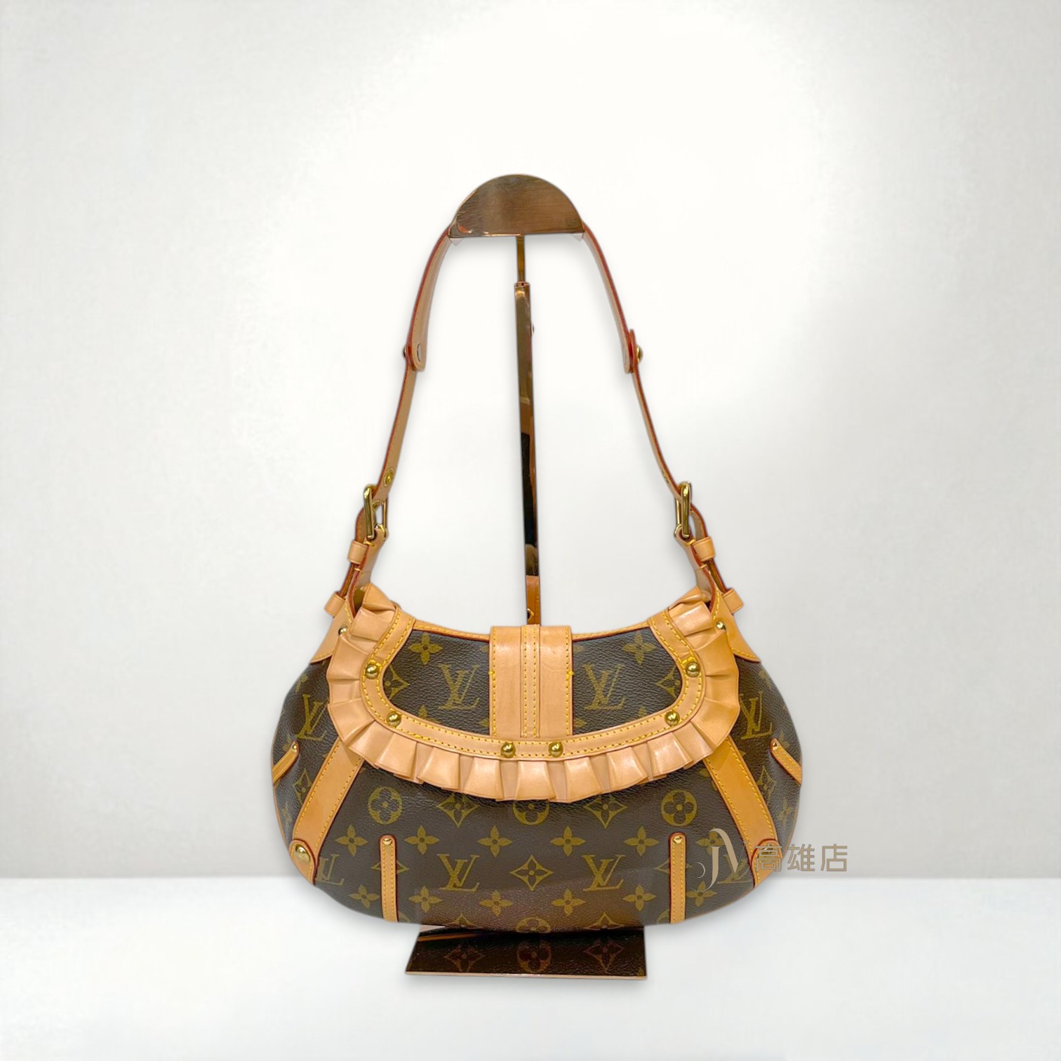 JK2041 LV包包 原花荷葉邊金釦Leonor下插雙排釦肩背包 M92394(高雄店)