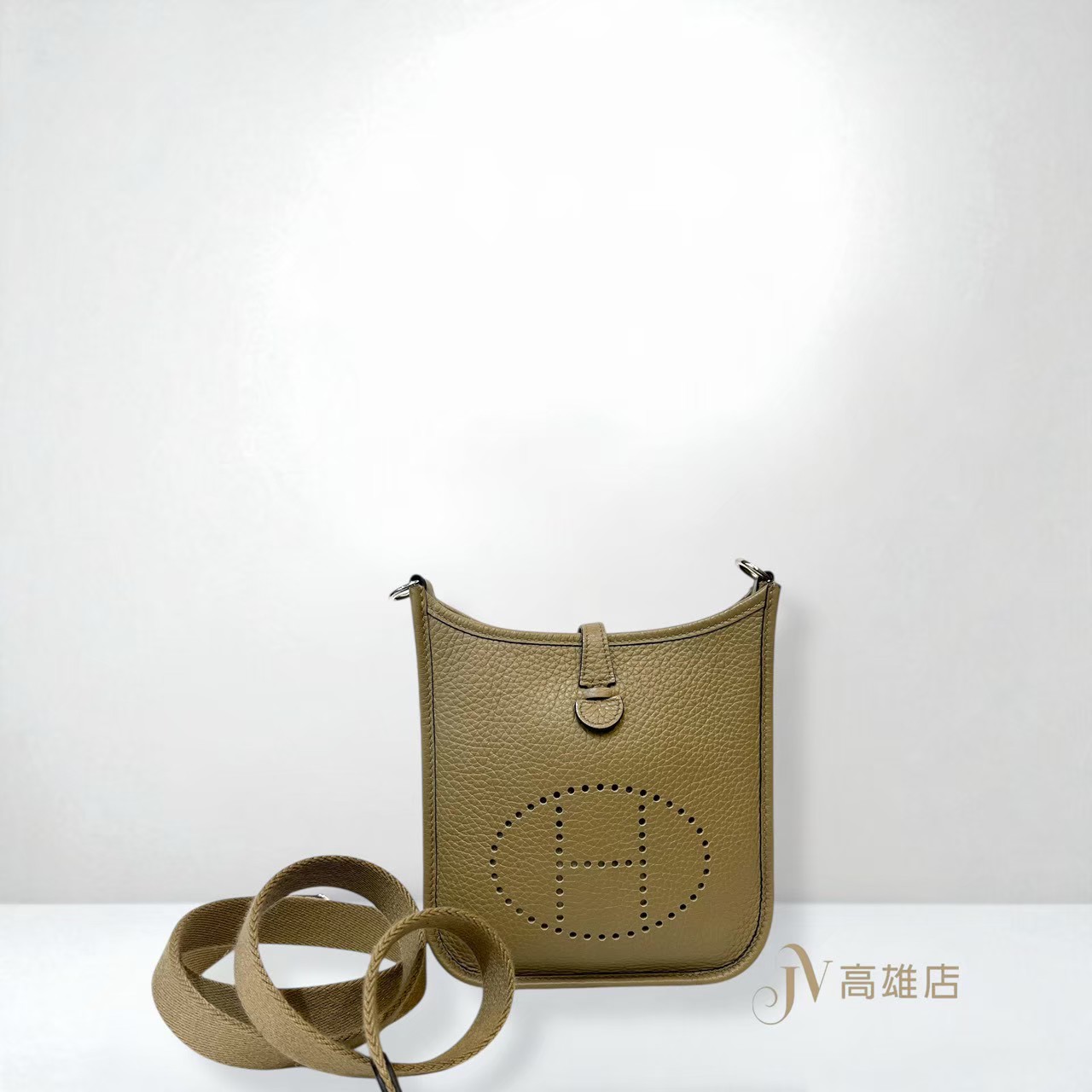 JK2061 Hermes包包 8Q馬爾法米色Beige Marfa Clemence皮銀釦Mini Evelyne16Amazone斜背包 H069426(高雄店)
