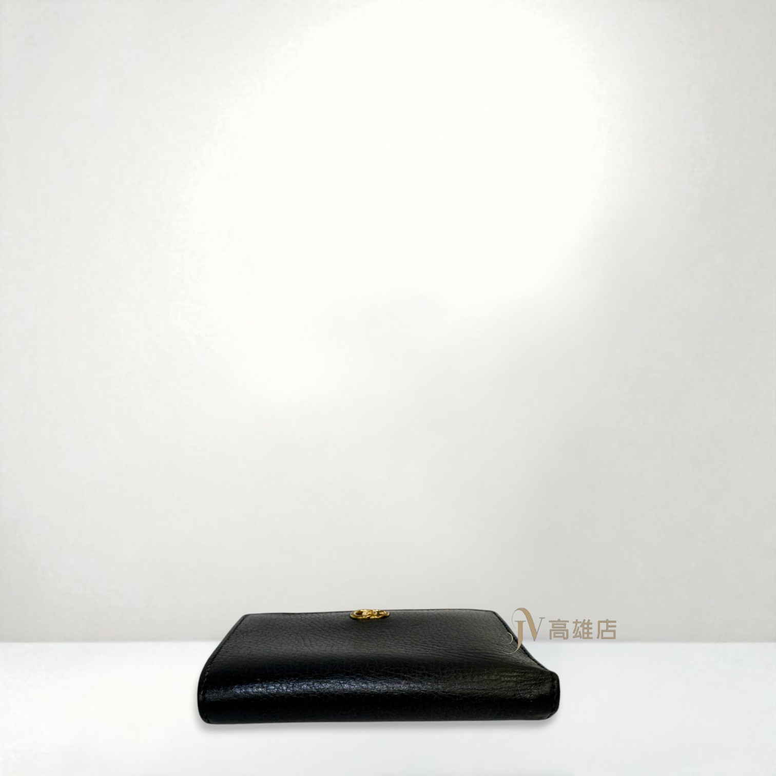 JP0133 Gucci短夾 黑牛皮金釦7卡前後釦L拉中短夾546588(高雄店)