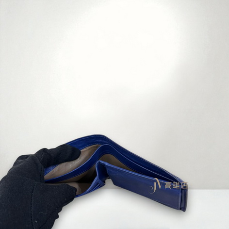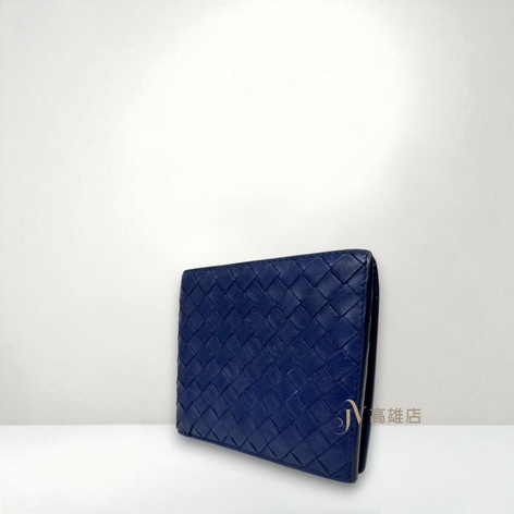 JP0152 BV短夾 藍色牛皮編織4卡內零錢袋對開短夾193642(高雄店)