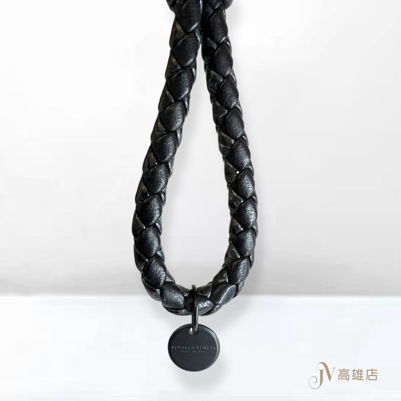 JP0196 BV鑰匙圈 黑色拚亮黑色羊皮黑釦編織鑰匙圈(高雄店)