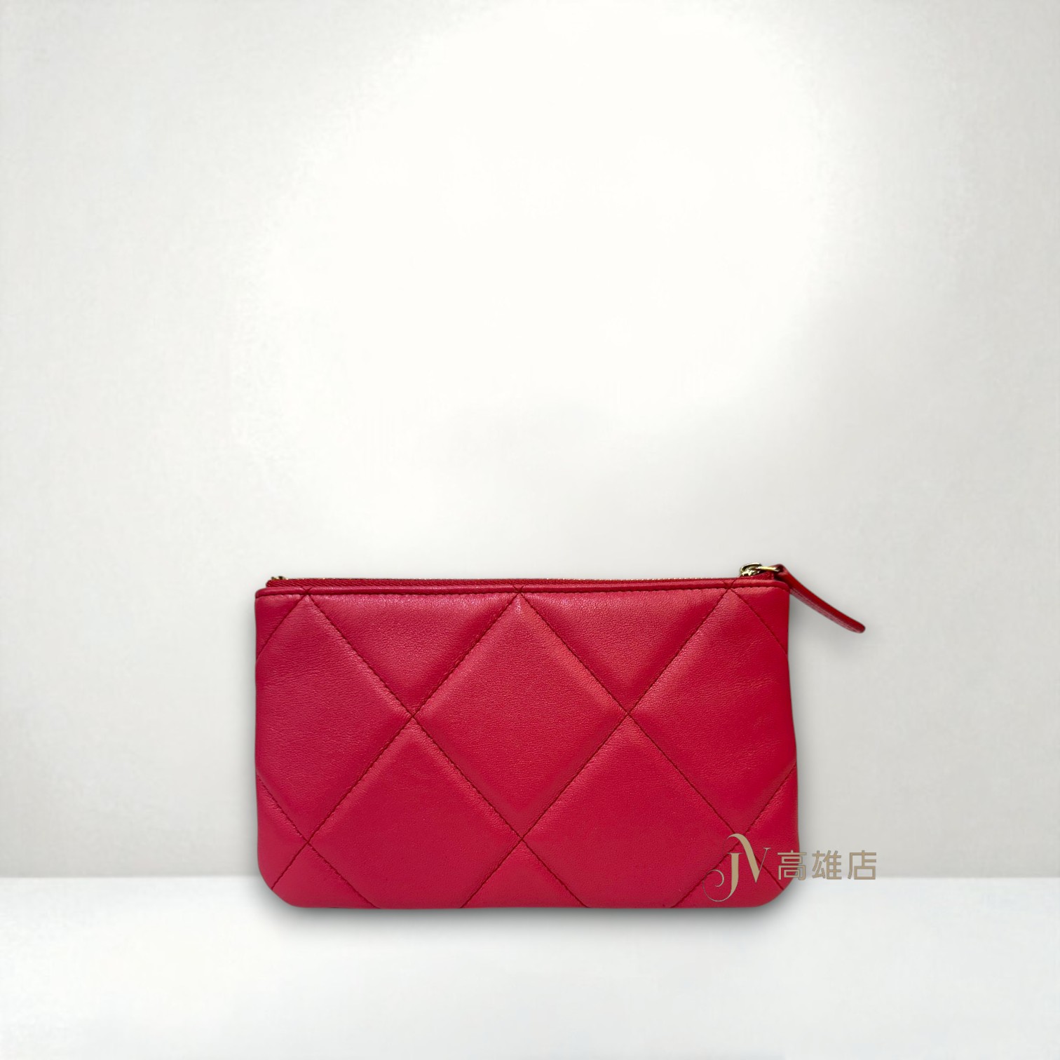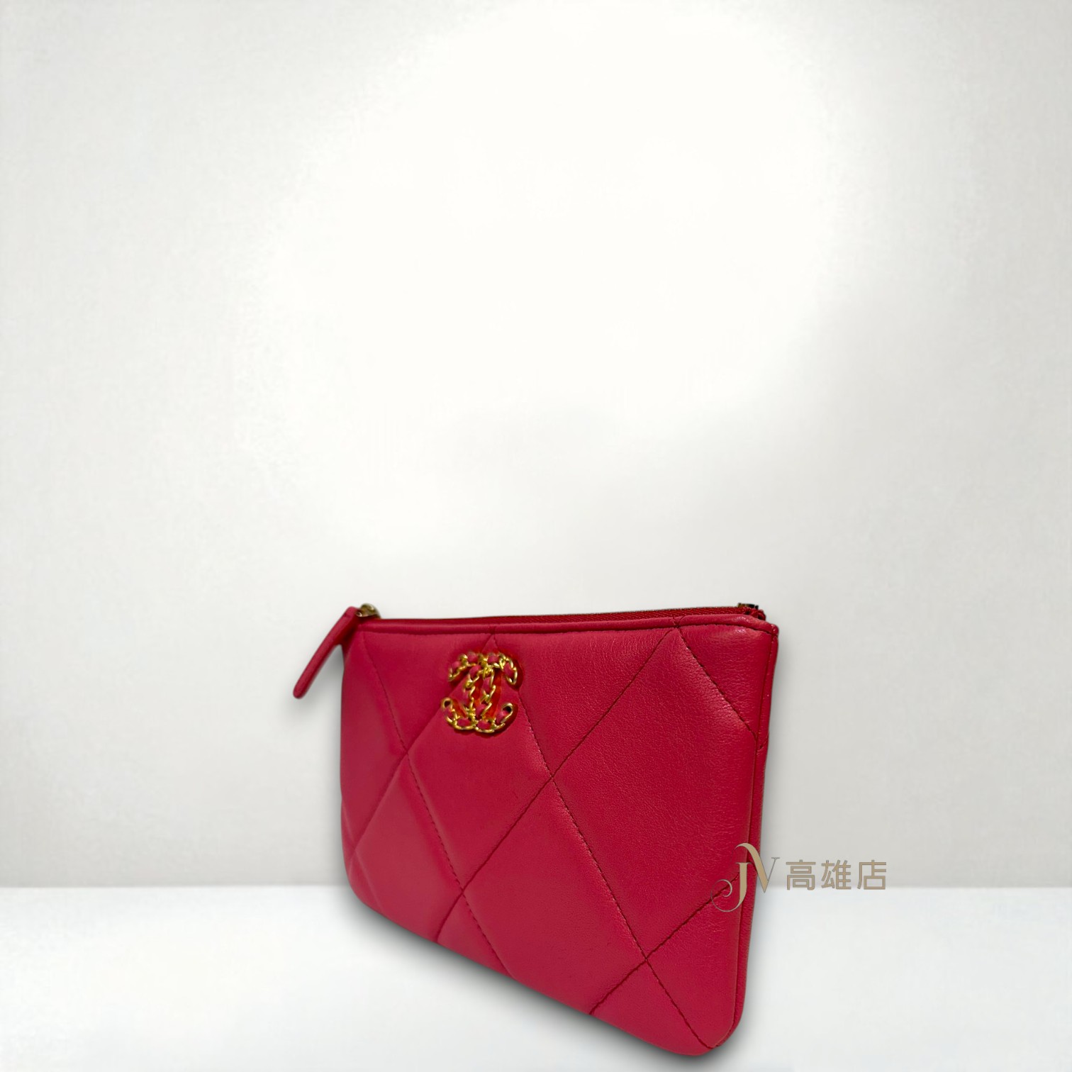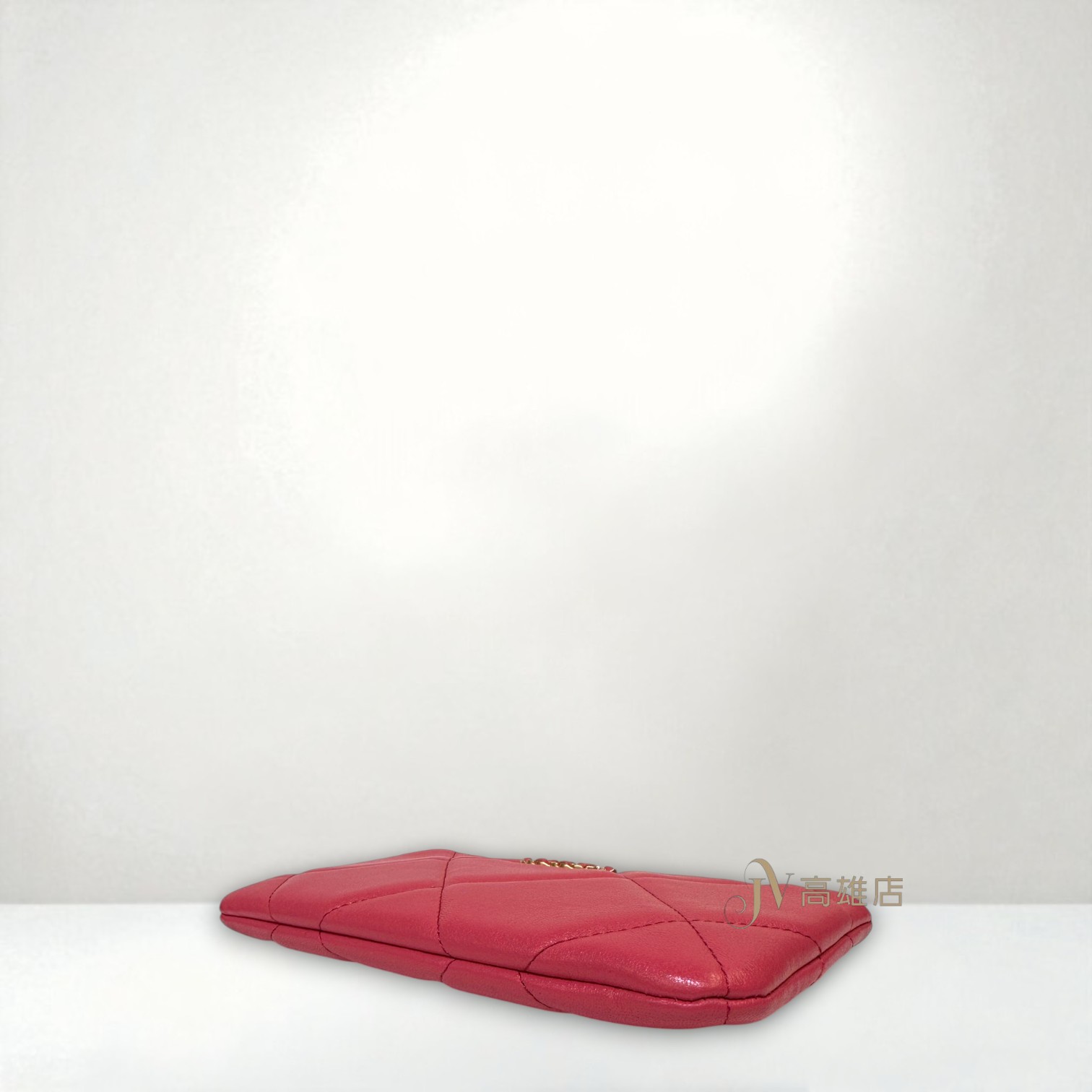 JP0637 Chanel卡包 粉羊皮19大菱格金釦一字拉鍊手拿包AP1059(高雄店)