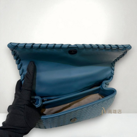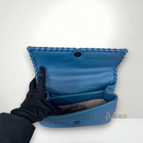 JP0674 BV包包 藏藍羊皮編織霧金釦下蓋磁釦肩斜背包(高雄店)