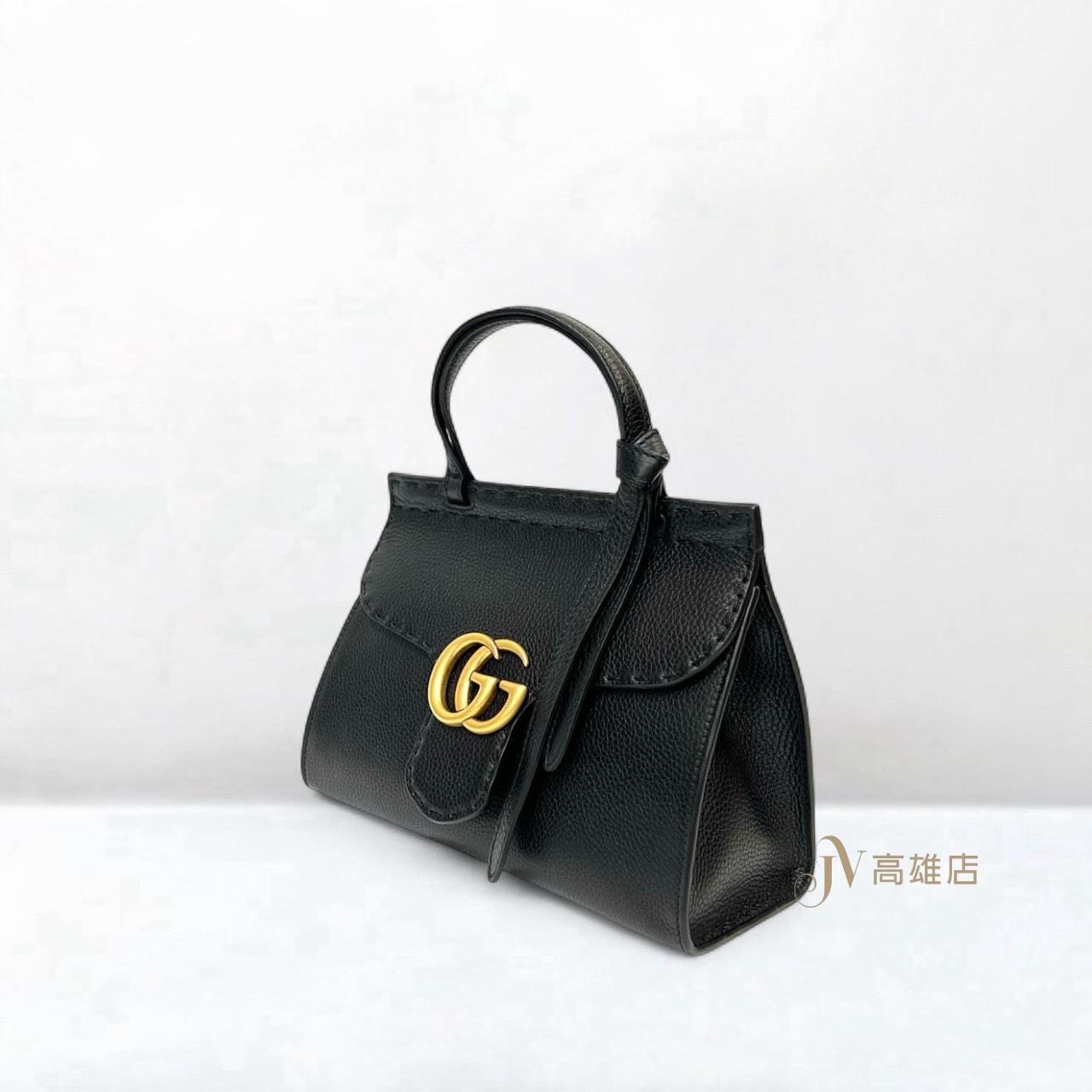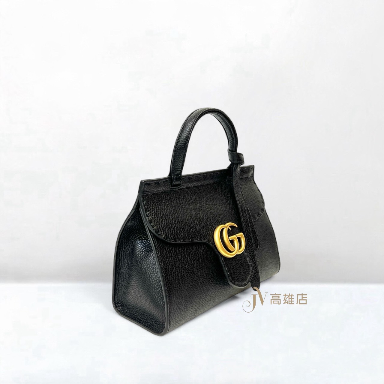 JP0685 Gucci包包黑牛皮霧金釦Marmont下蓋手提肩斜背包(喬萱高雄店)