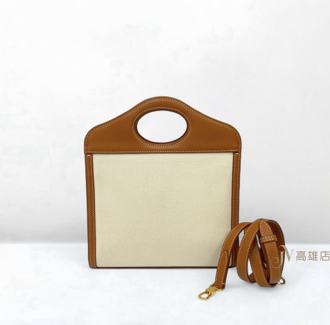 JP0703 Burberry包包米帆布焦糖牛皮金釦Pocket手提斜背包8036812(喬萱高雄店)
