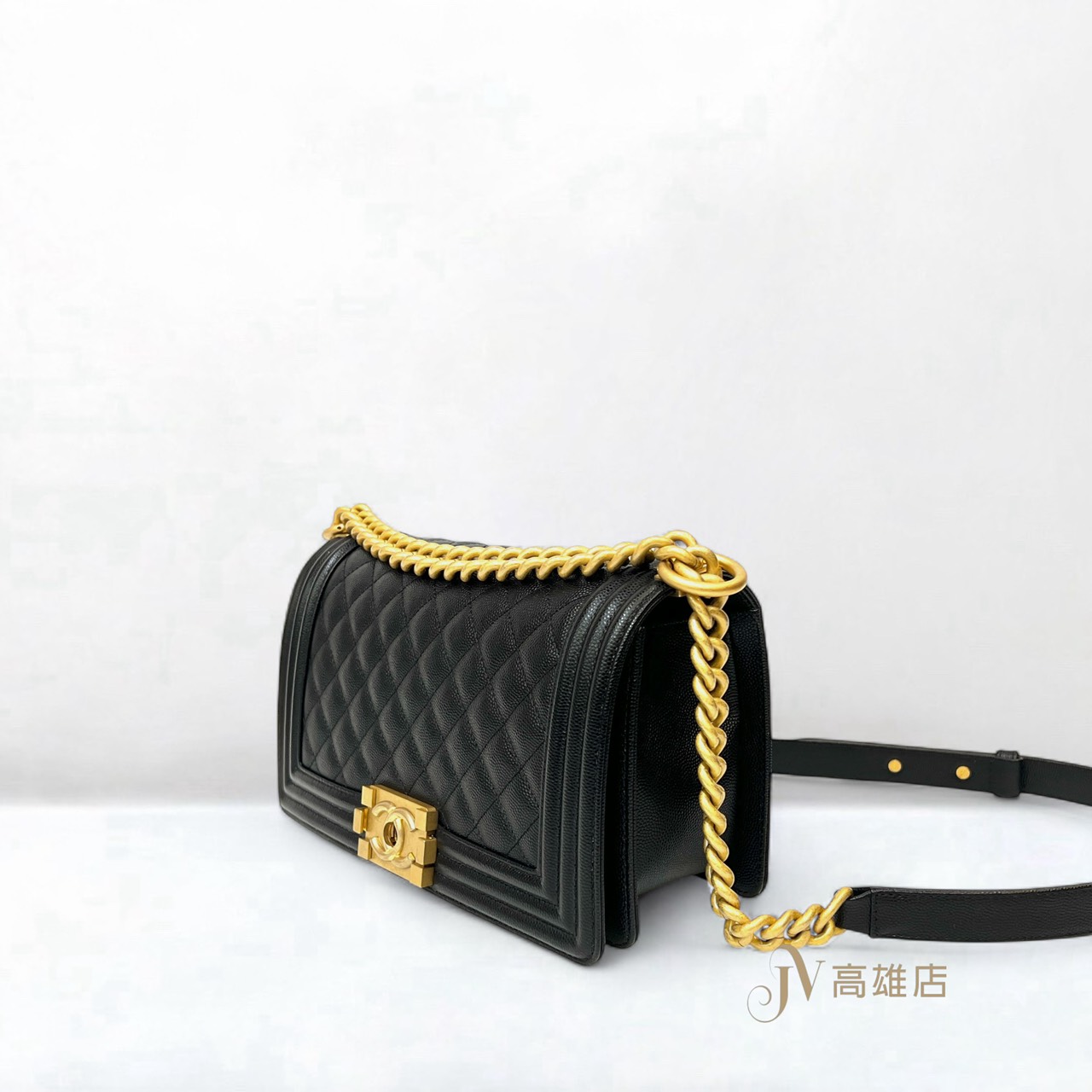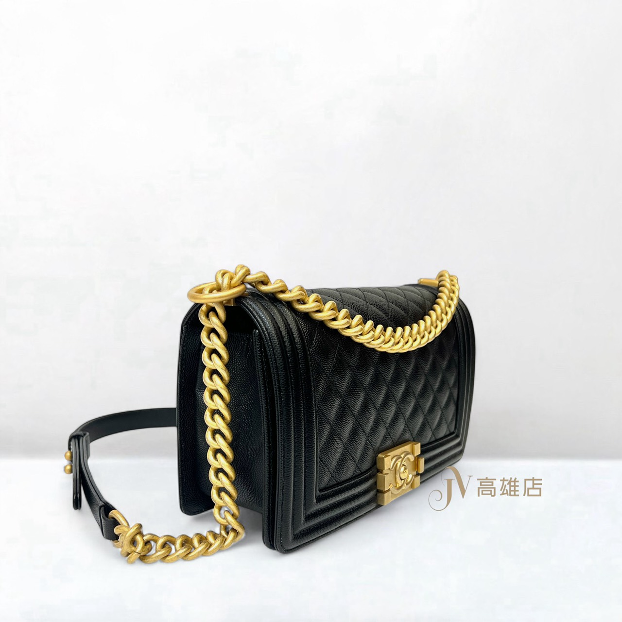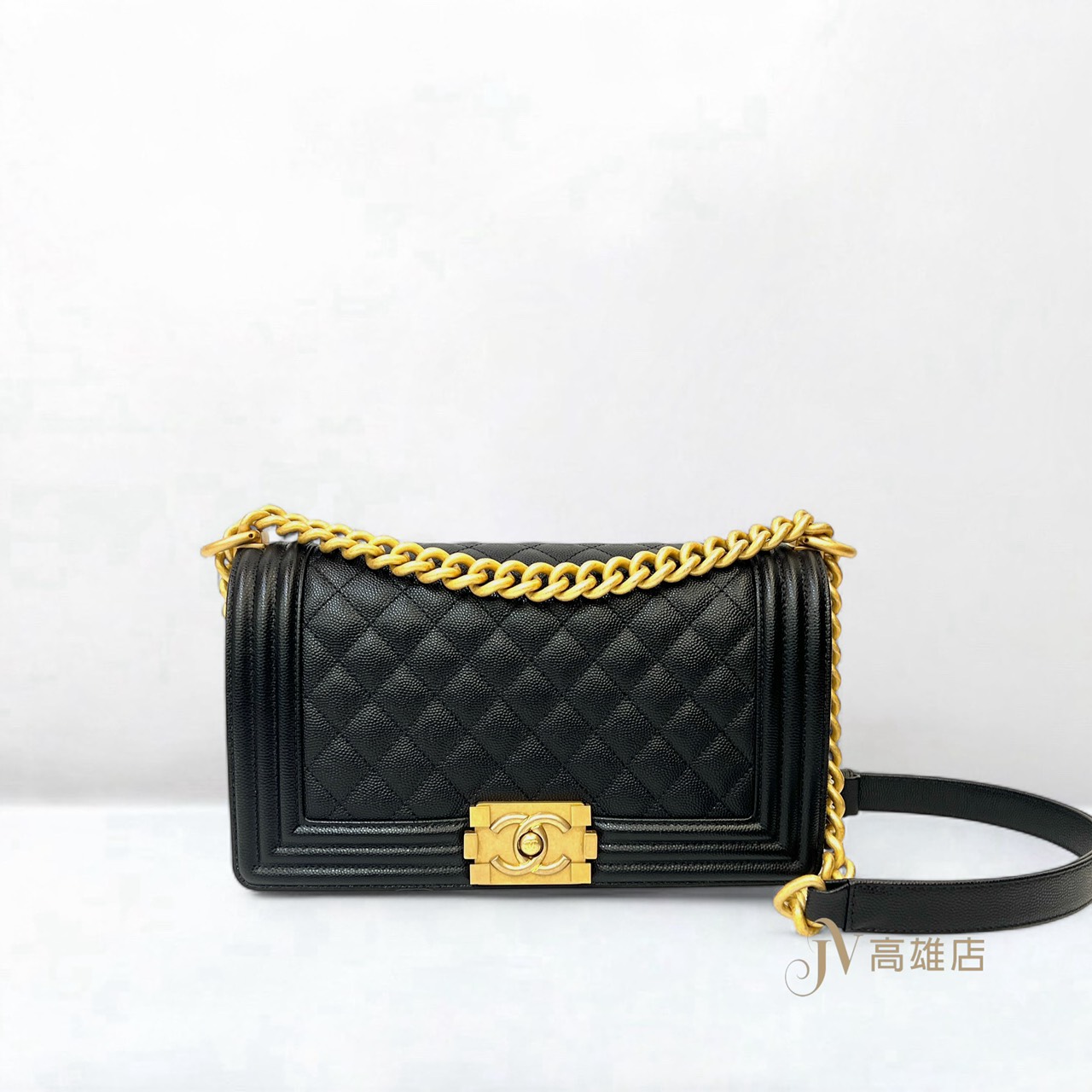路徑: 首頁 / 精品賣場 / CHANEL / CHANEL-包款 / JP0707Chanel包包 黑荔枝牛皮霧金釦Boy25(高雄店)