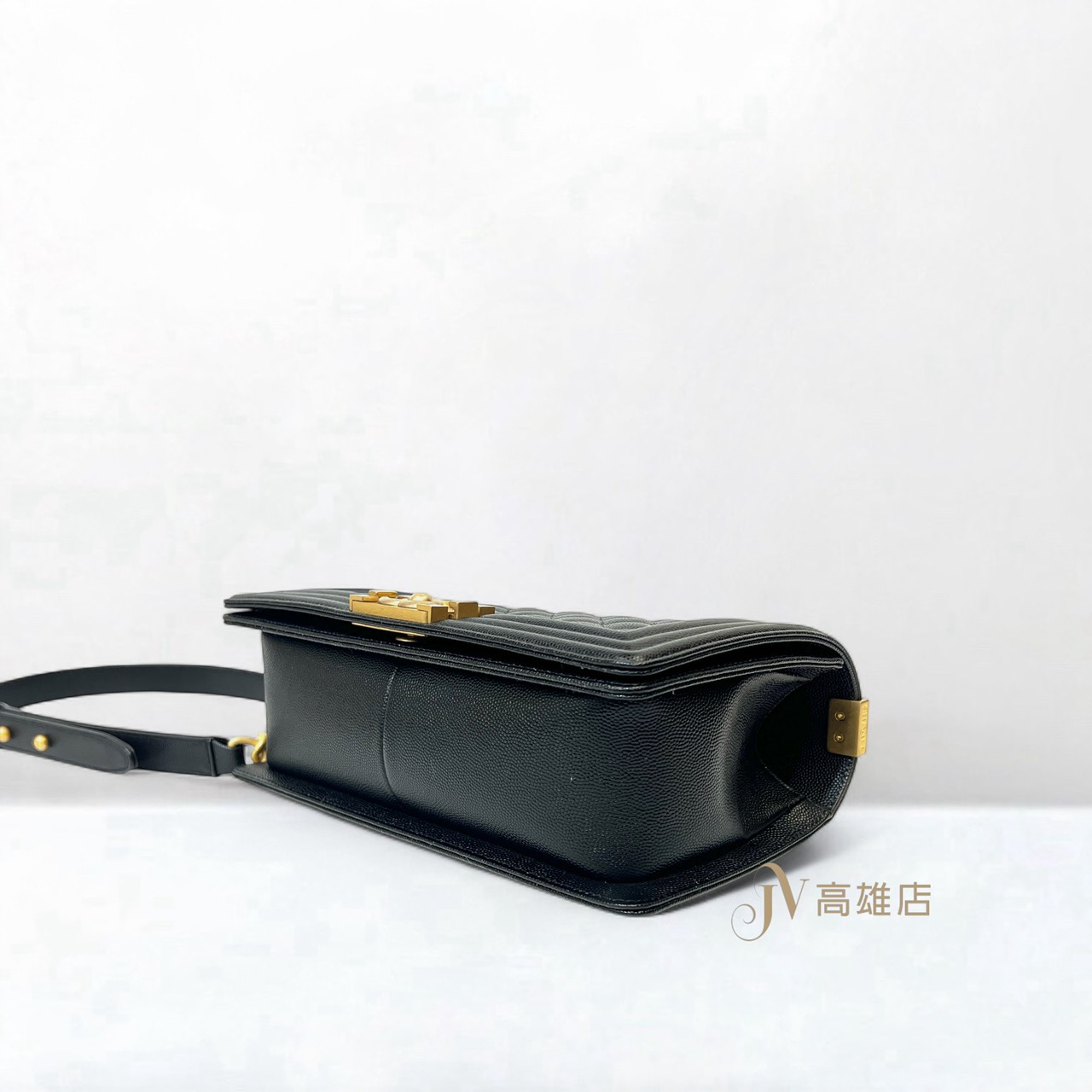 Chanel 黑荔枝牛皮霧金釦Boy25