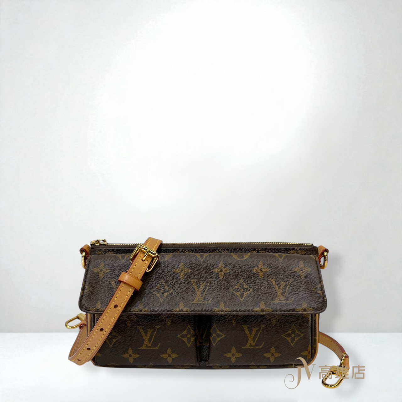 JP0745 LV包包 原花金釦vivacite雙口袋肩斜背包 M46999(喬萱高雄店)