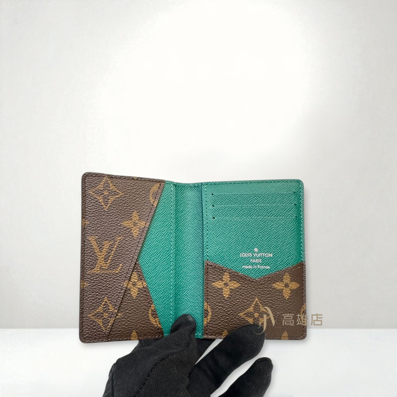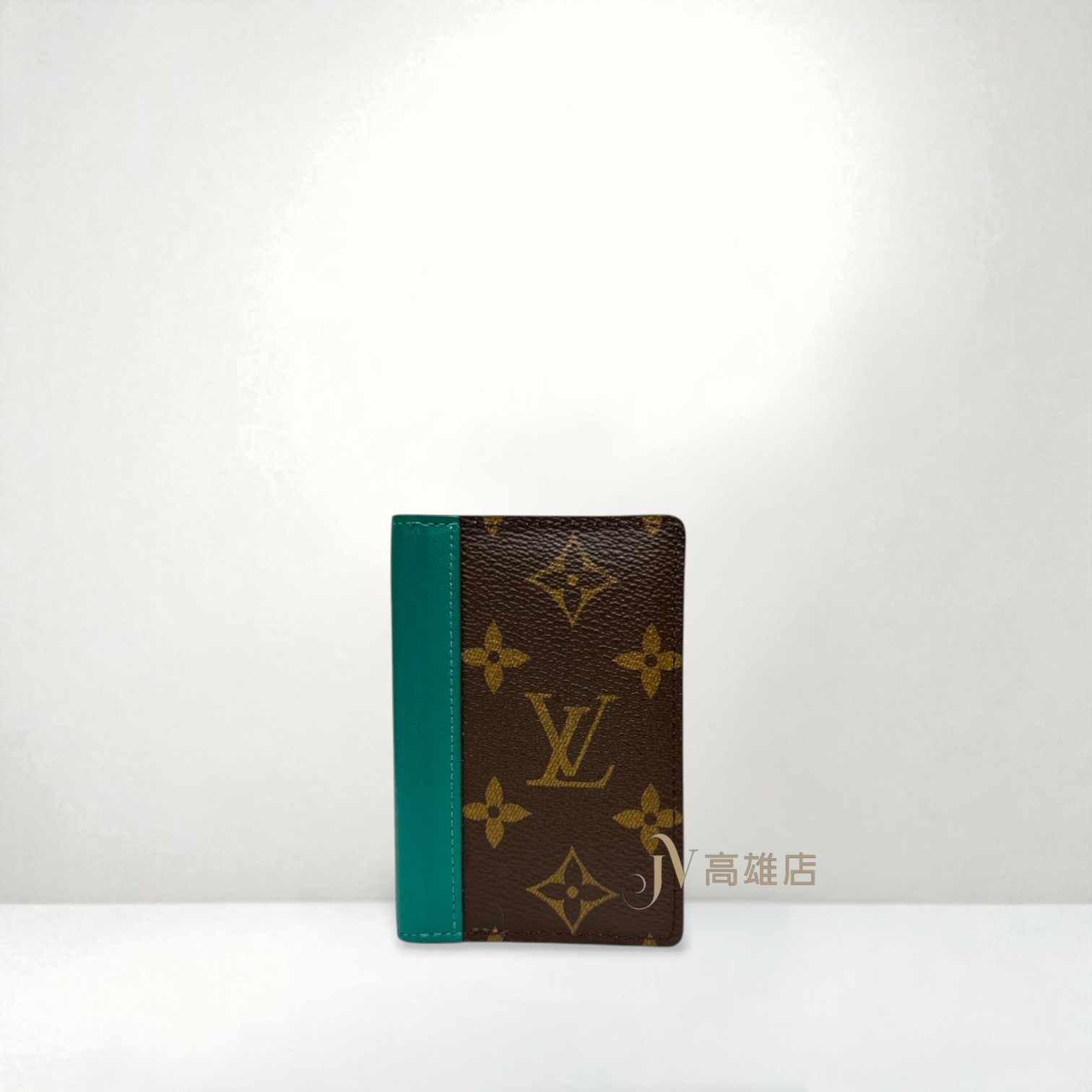 JP0773 LV卡夾 原花拚綠牛皮對開6卡萬用卡夾 M12829(高雄店)