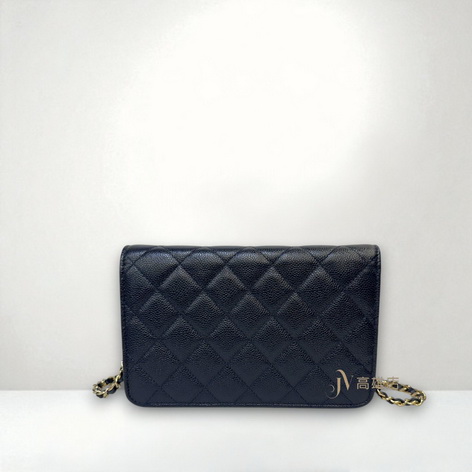 路徑: 首頁 / 精品賣場 / CHANEL / CHANEL-包款 / JP0779 Chanel包包 深藍荔枝牛皮菱格淡金釦浮雕Logo下蓋6卡斜背wocAP3054(...