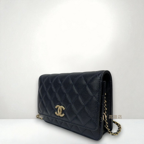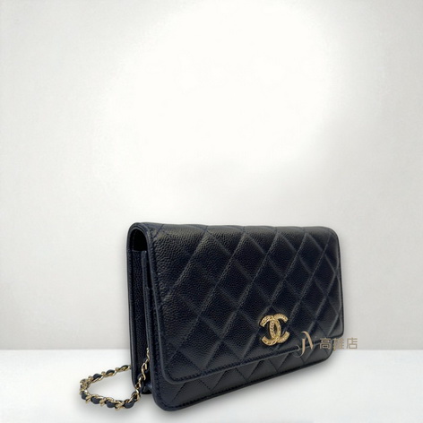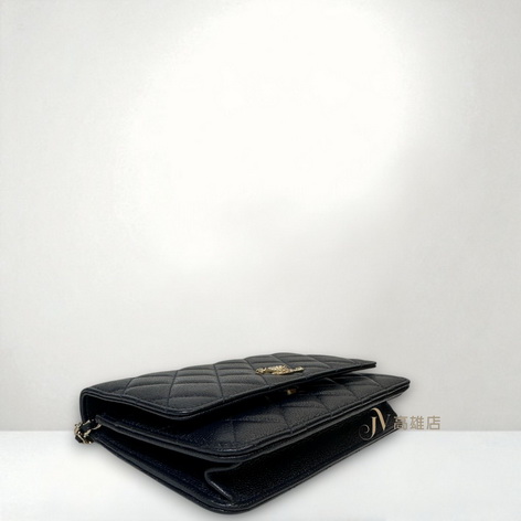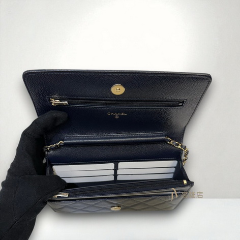 JP0779 Chanel包包 深藍荔枝牛皮菱格淡金釦浮雕Logo下蓋6卡斜背wocAP3054(高雄店)