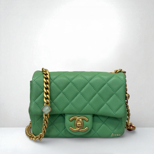 JS0313 CHANEL包包 綠色羊皮金釦寶石鏈方胖子 (板橋店) JS1274 Burberry包包 橄欖綠毛呢格紋 Mini Lola 下蓋斜背包 (板...