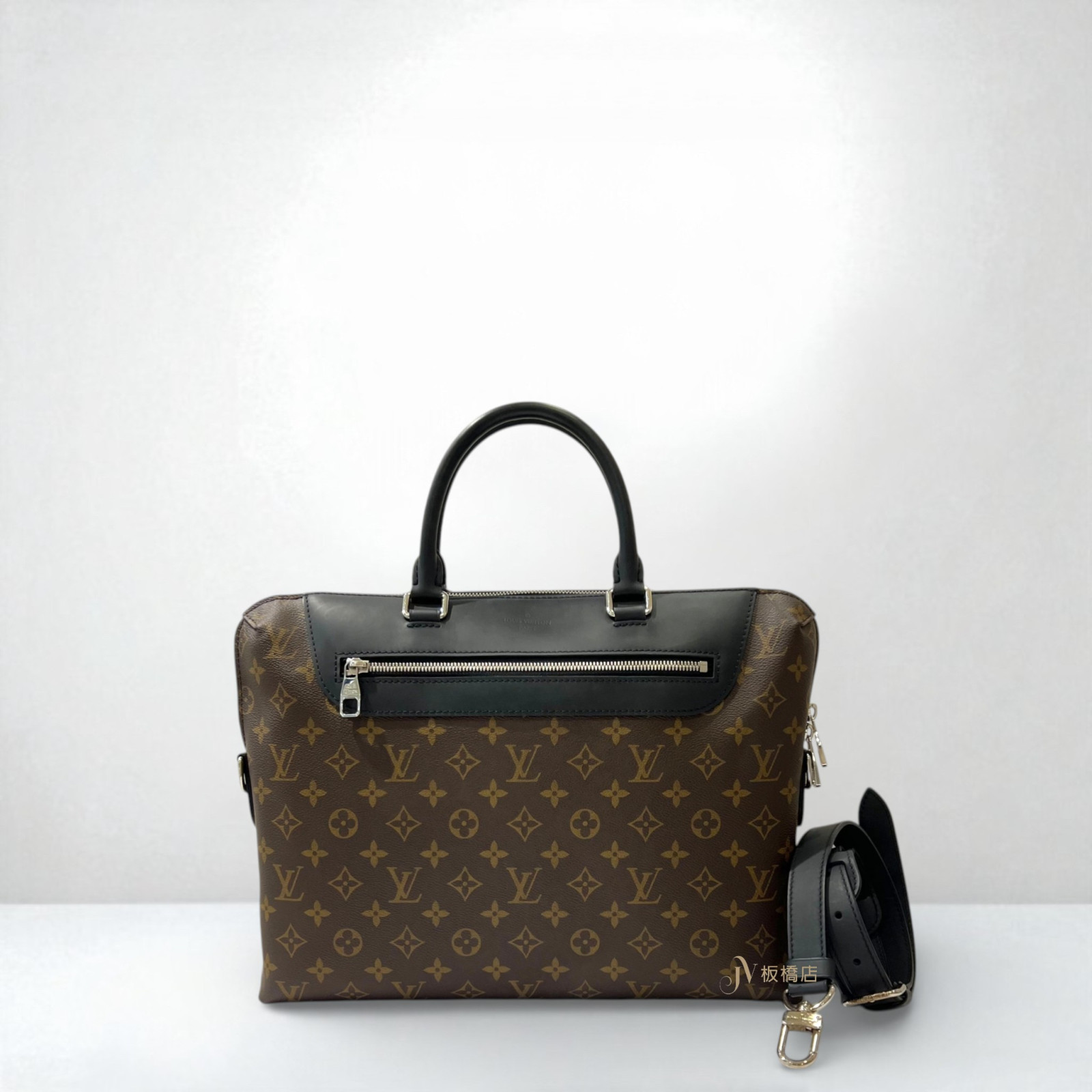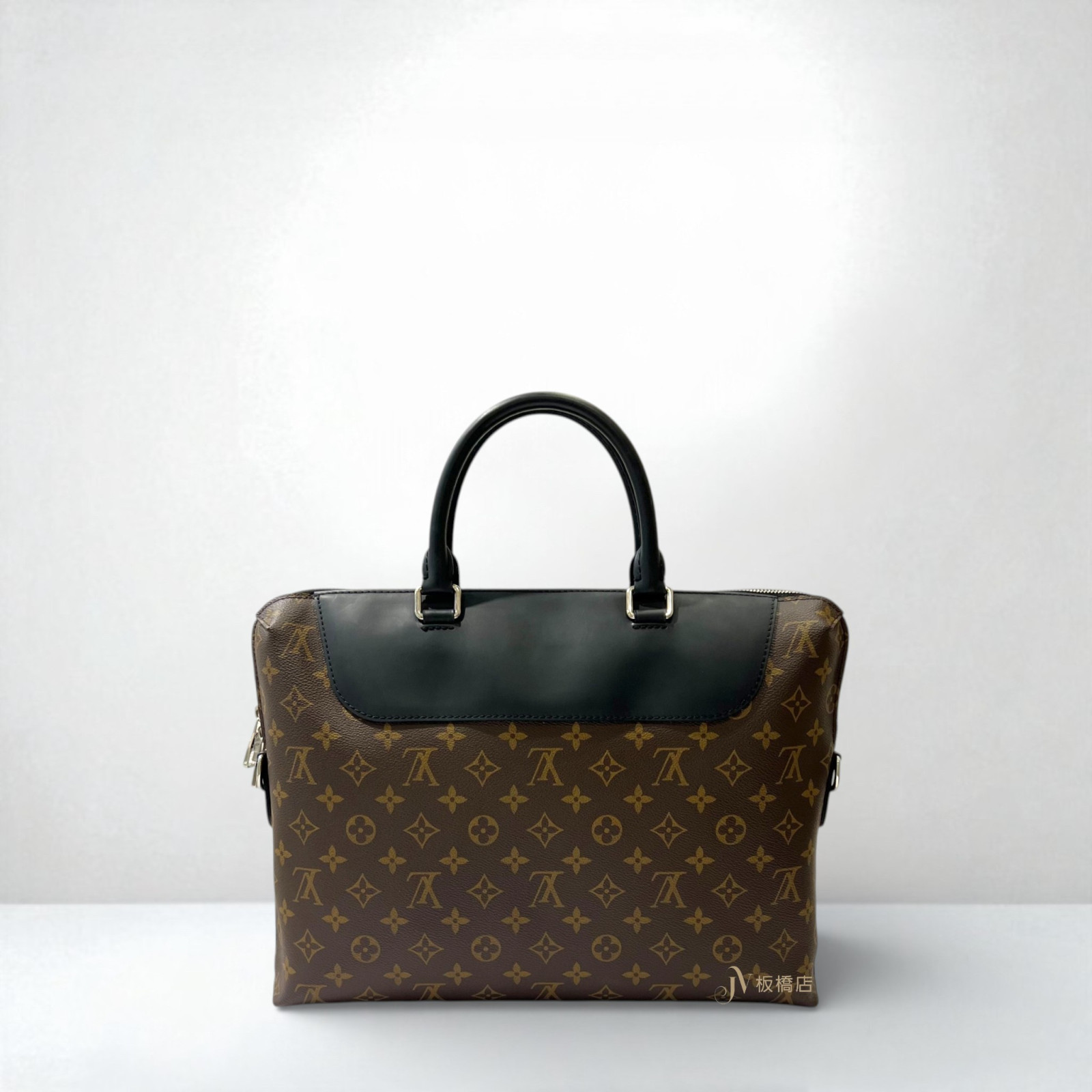 JS0008 LV包包 原花黑牛皮銀釦ㄇ拉手提斜背公事包M54019 (板橋店)