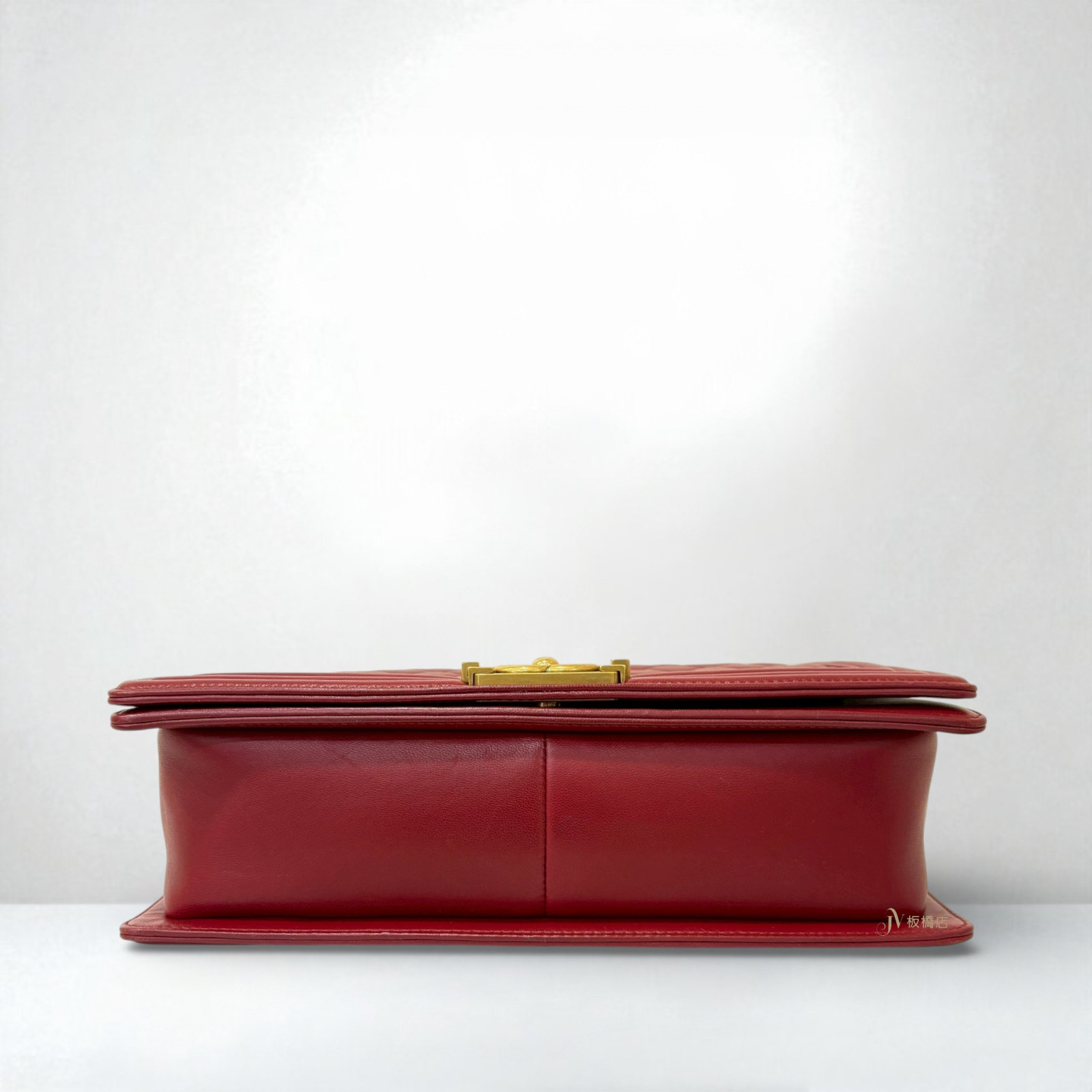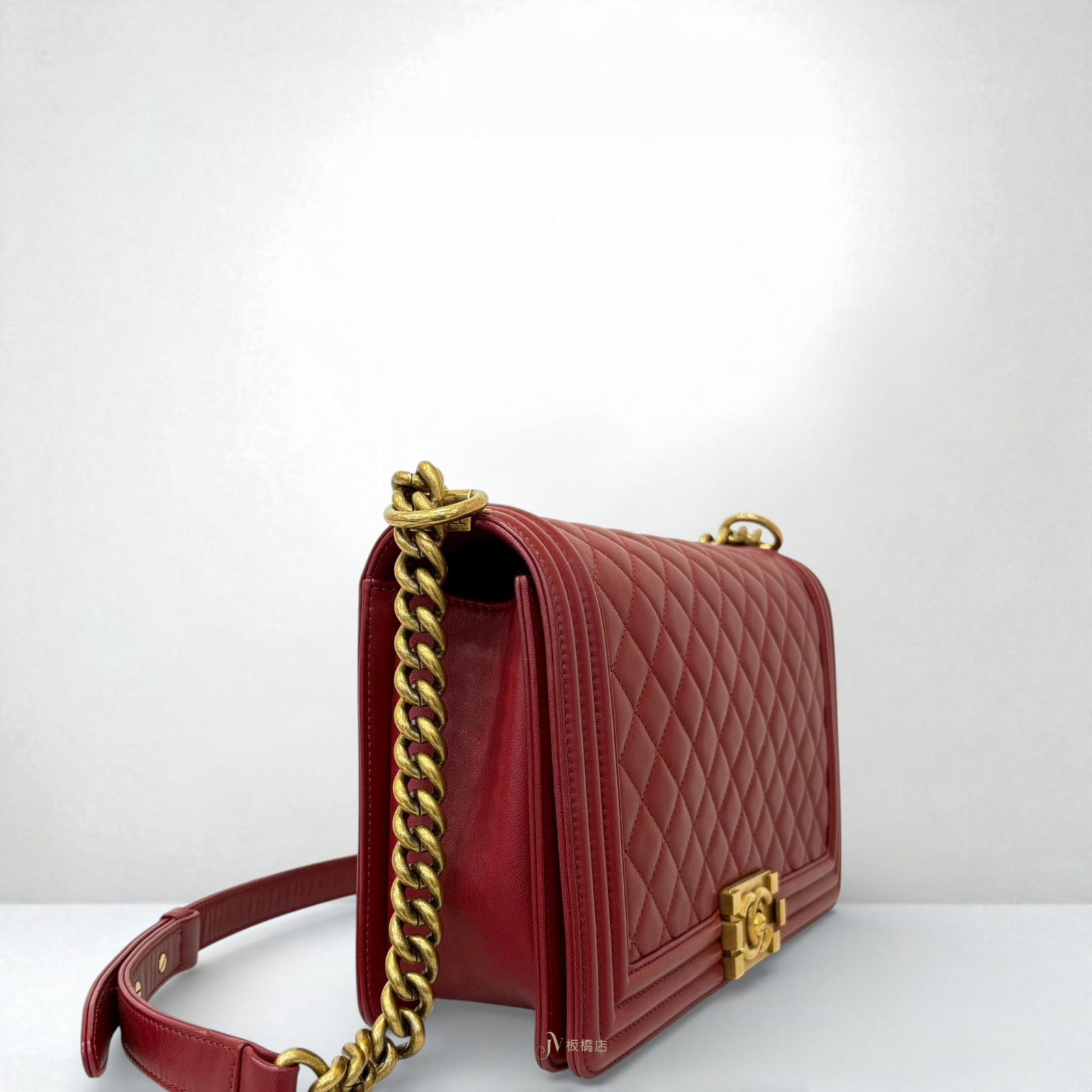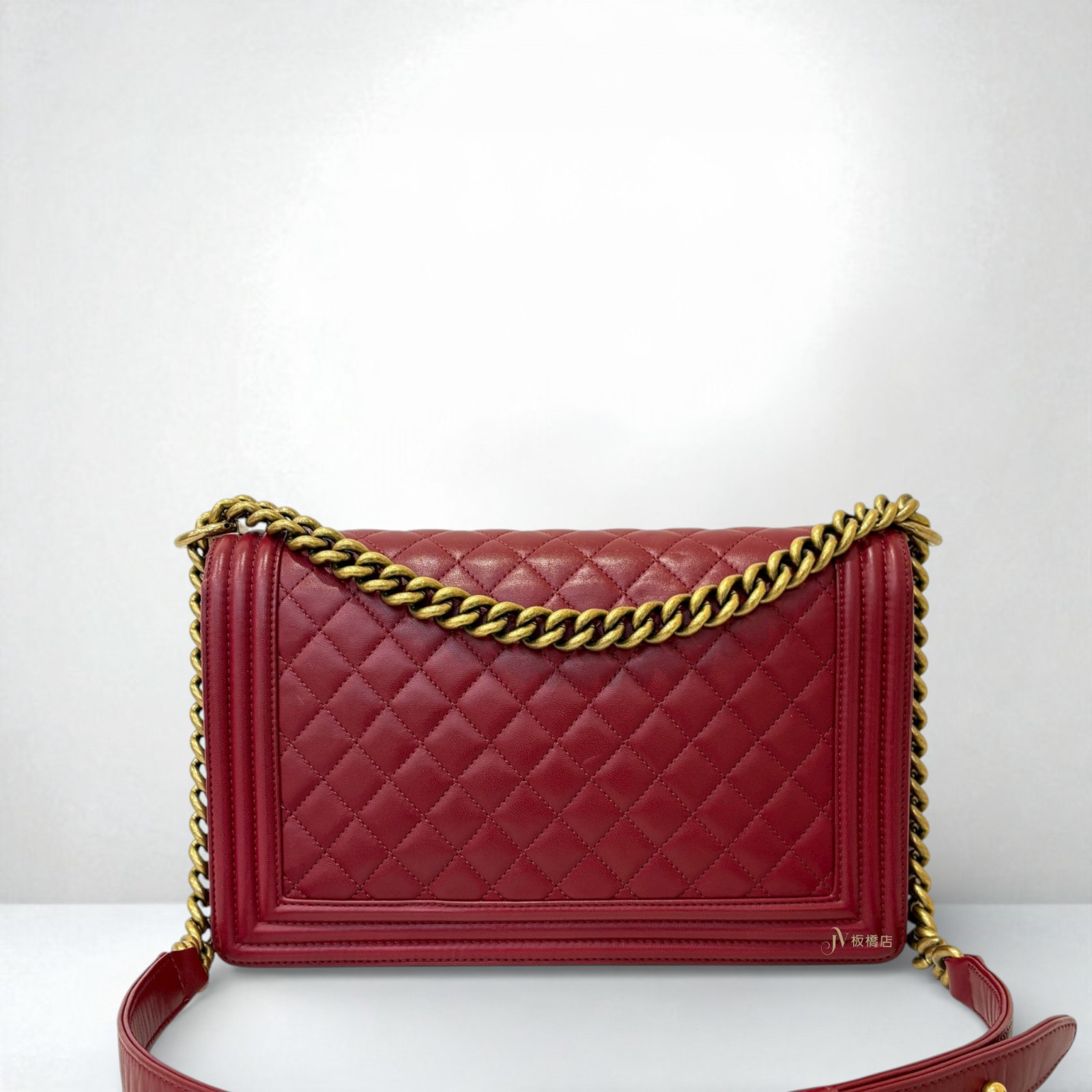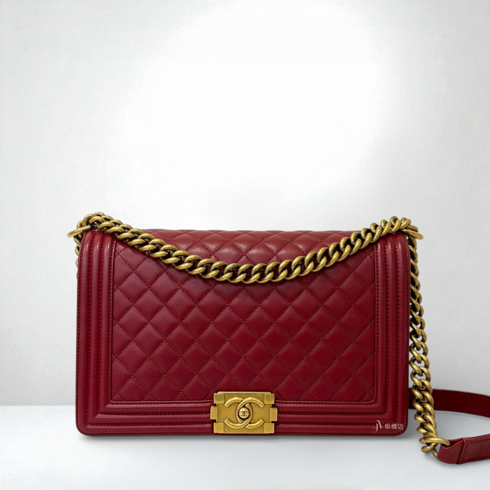 路徑: 首頁 / 精品賣場 / CHANEL / CHANEL-包款 / JS0018 CHANEL包包 棗紅金釦羊皮菱格boy28/A92193 (板橋店)