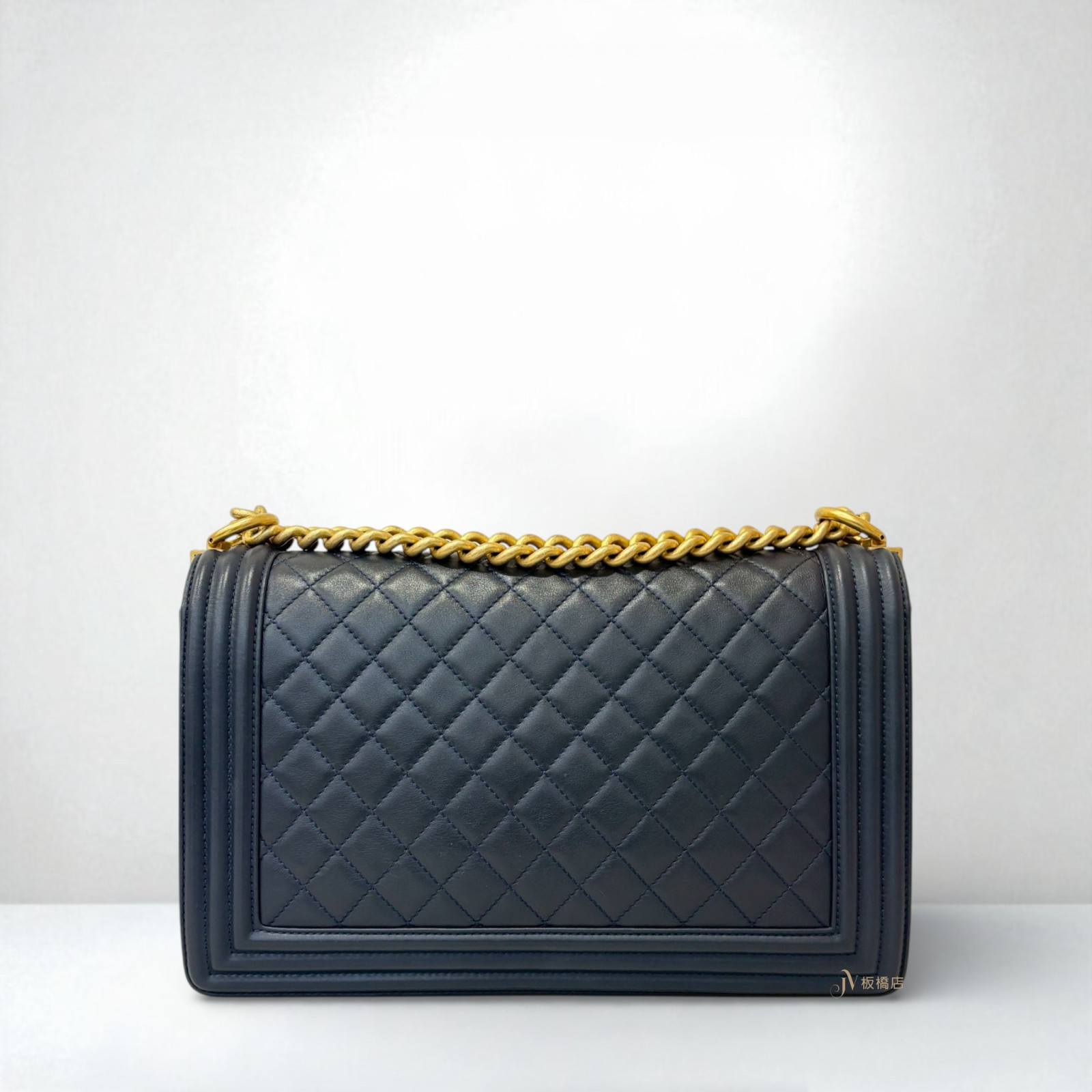 路徑: 首頁 / 精品賣場 / CHANEL / CHANEL-包款 / JS0161 CHANEL包包 藍色羊皮金釦BOY28 A92193 (板橋店)