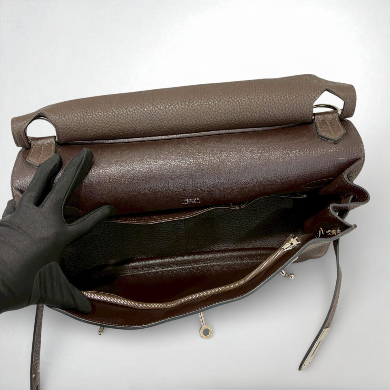 路徑: 首頁 / 精品賣場 / Hermes / Hermes-包款 / JS0178 Hermes包包 深咖啡色銀釦TOGO皮JYPSIERE 37 (板橋店)