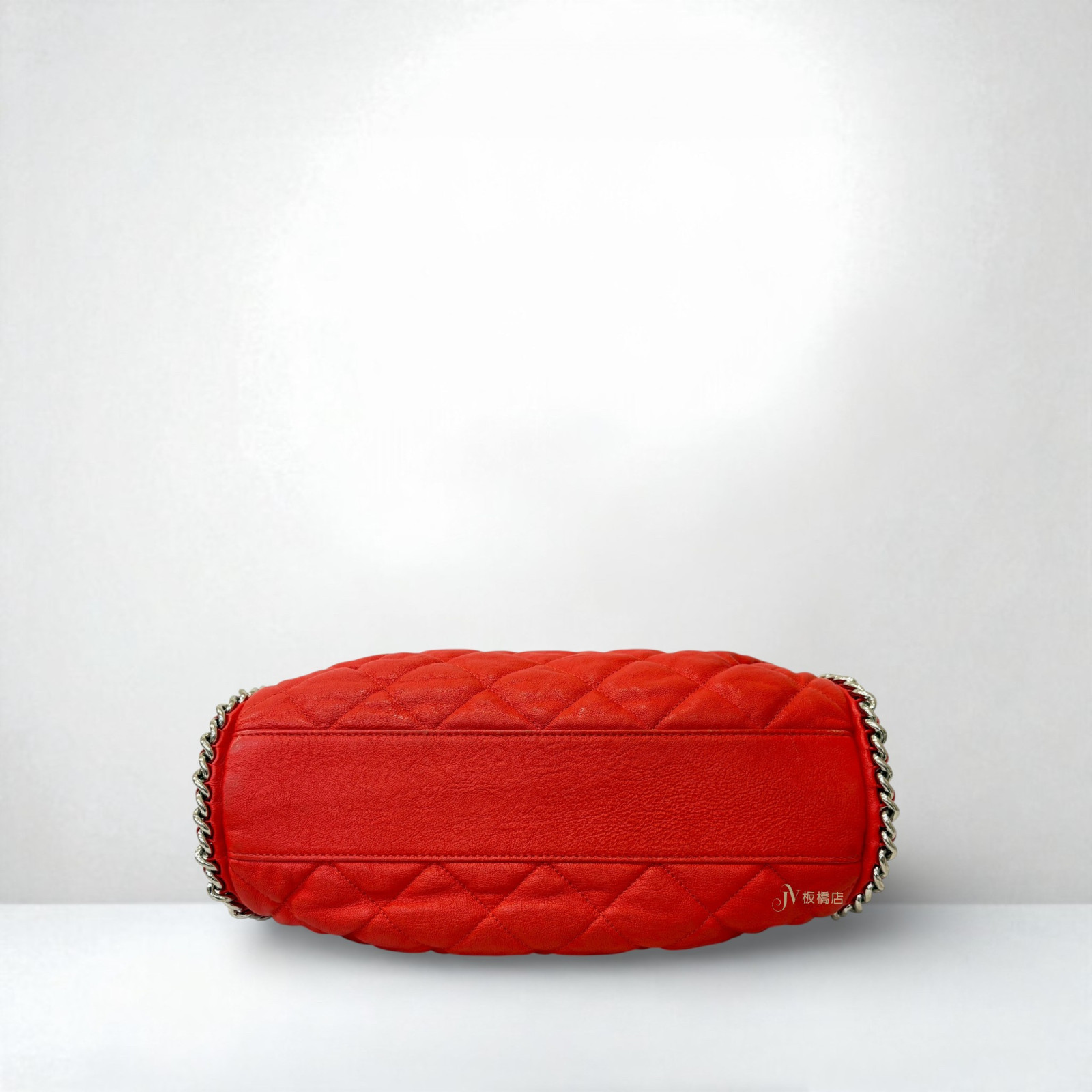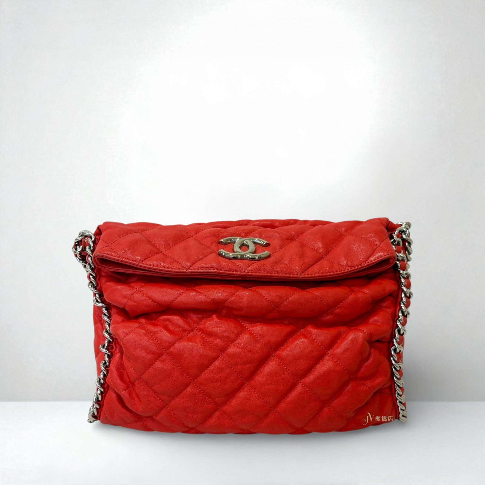 JS0228 CHANEL包包 紅色牛皮銀釦粗練肩背包 (板橋店)