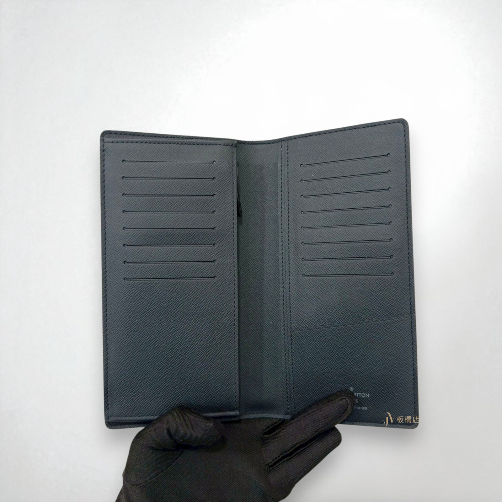 • JA0053 LV皮夾 海軍藍牛皮壓紋下蓋長夾(桃園店)