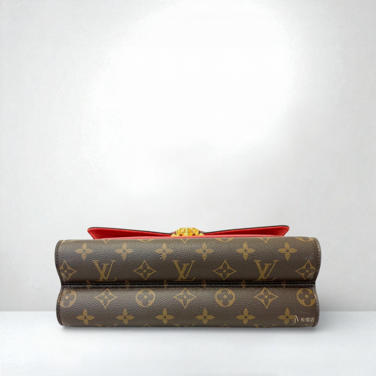 JS0299 LV包包 VICTOIRE 原花拼接櫻桃紅牛皮肩背包 M41731 (板橋店)