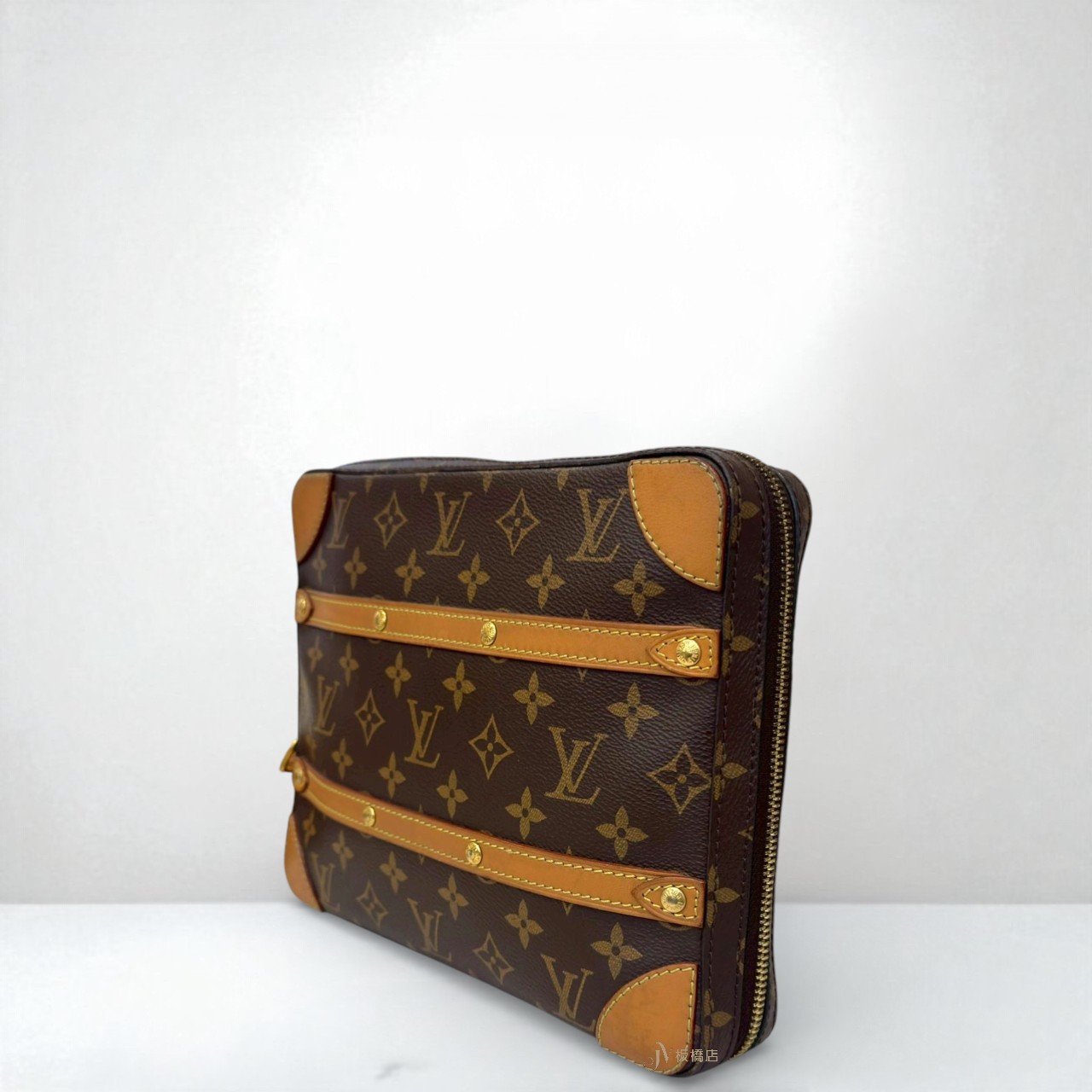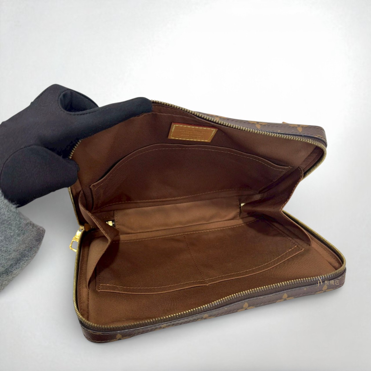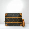 JS0436 LV包包 原花前雙苯染皮橫條金釦ㄇ拉皮帶環斜背包PM M68494 (板橋店)