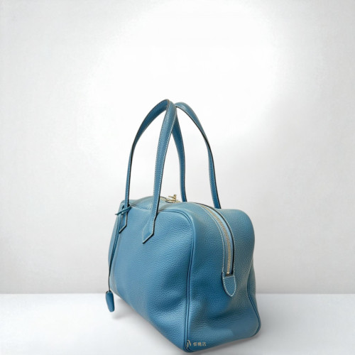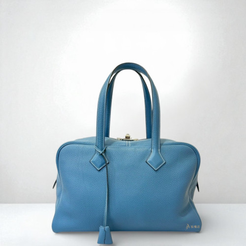 • JS0010 Hermes包包 voctoria牛仔藍銀扣35cm肩背包 (板橋店)