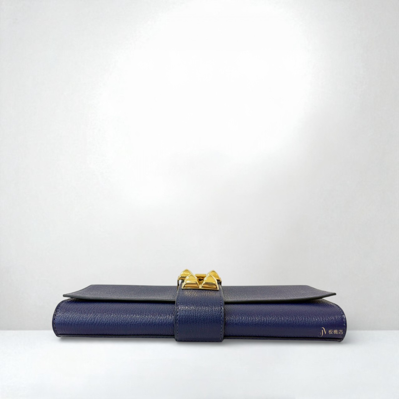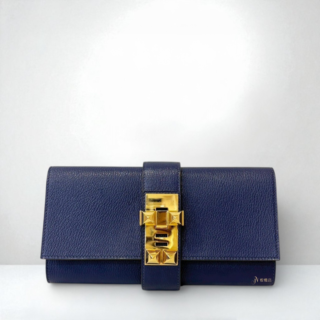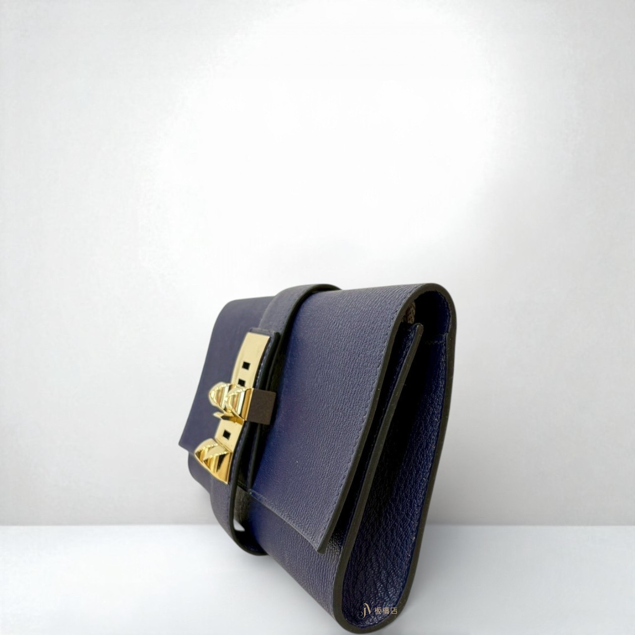 JS0634 Hermes包包 深藍山羊皮CDC金釦可調式下蓋手拿包 (板橋店)