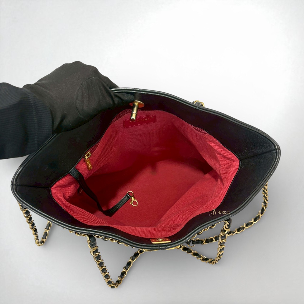 路徑: 首頁 / 精品賣場 / CHANEL / CHANEL-包款 / JS0809 CHANEL包包 雙C菱格紋黑色牛皮金釦托特包AS2374 (板橋店)...