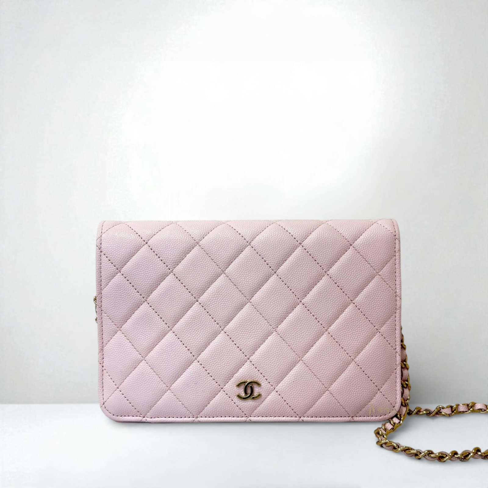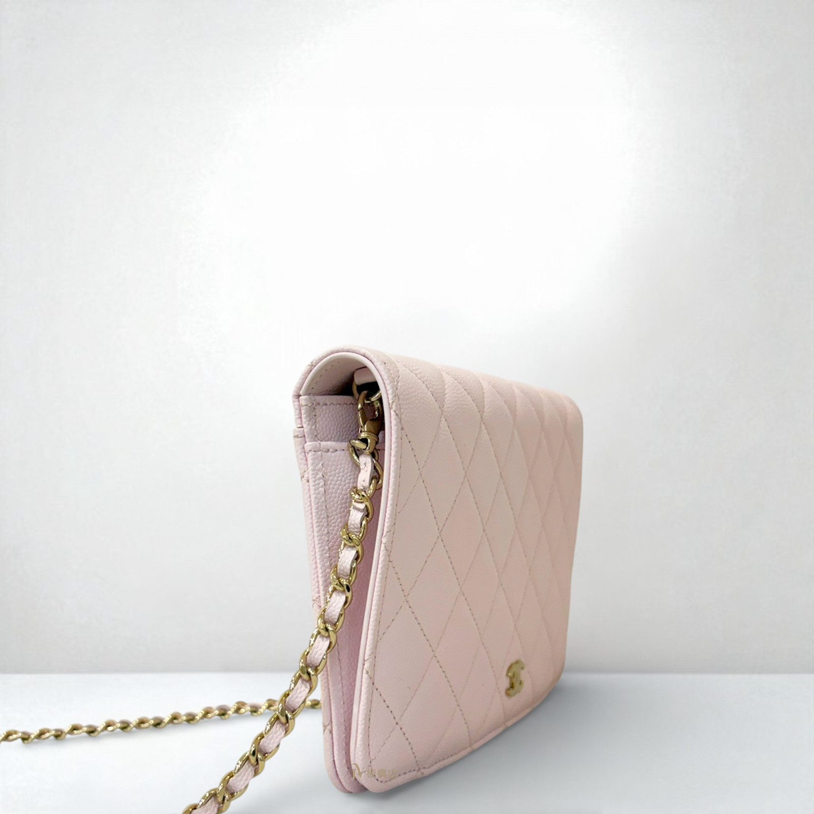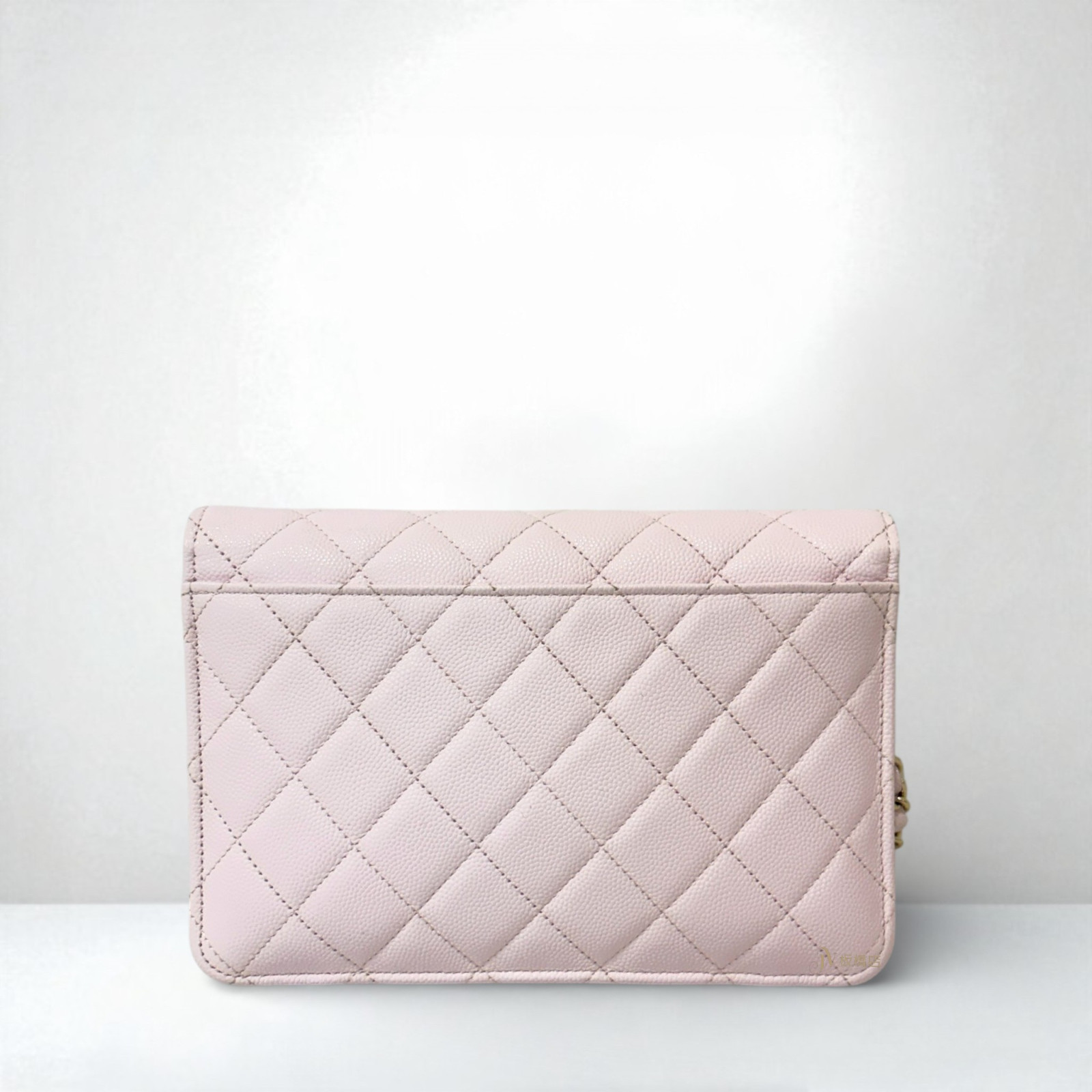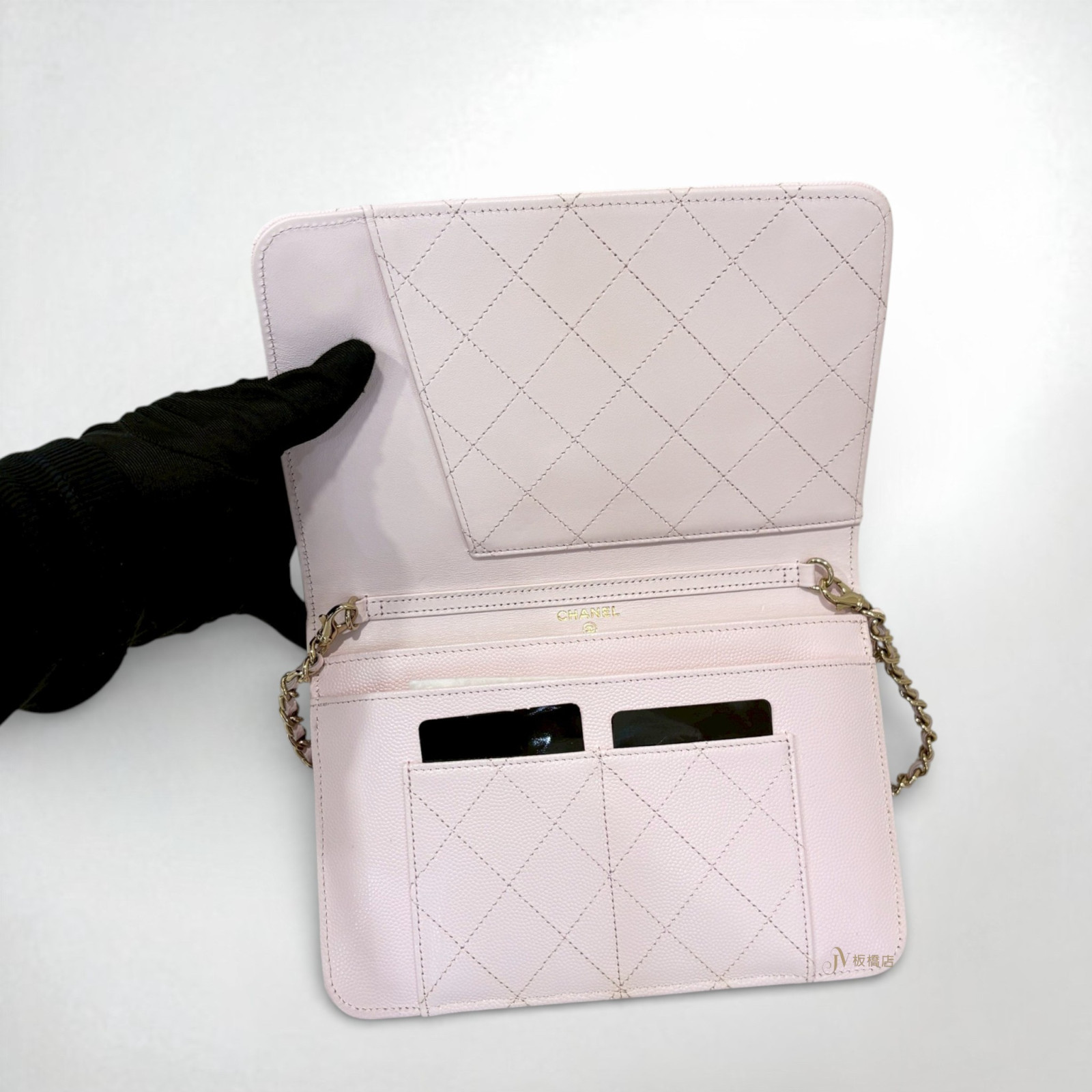 JS0885 CHANEL包包 淡粉色荔枝皮金釦鏈帶翻蓋練包AP2595 (板橋店)