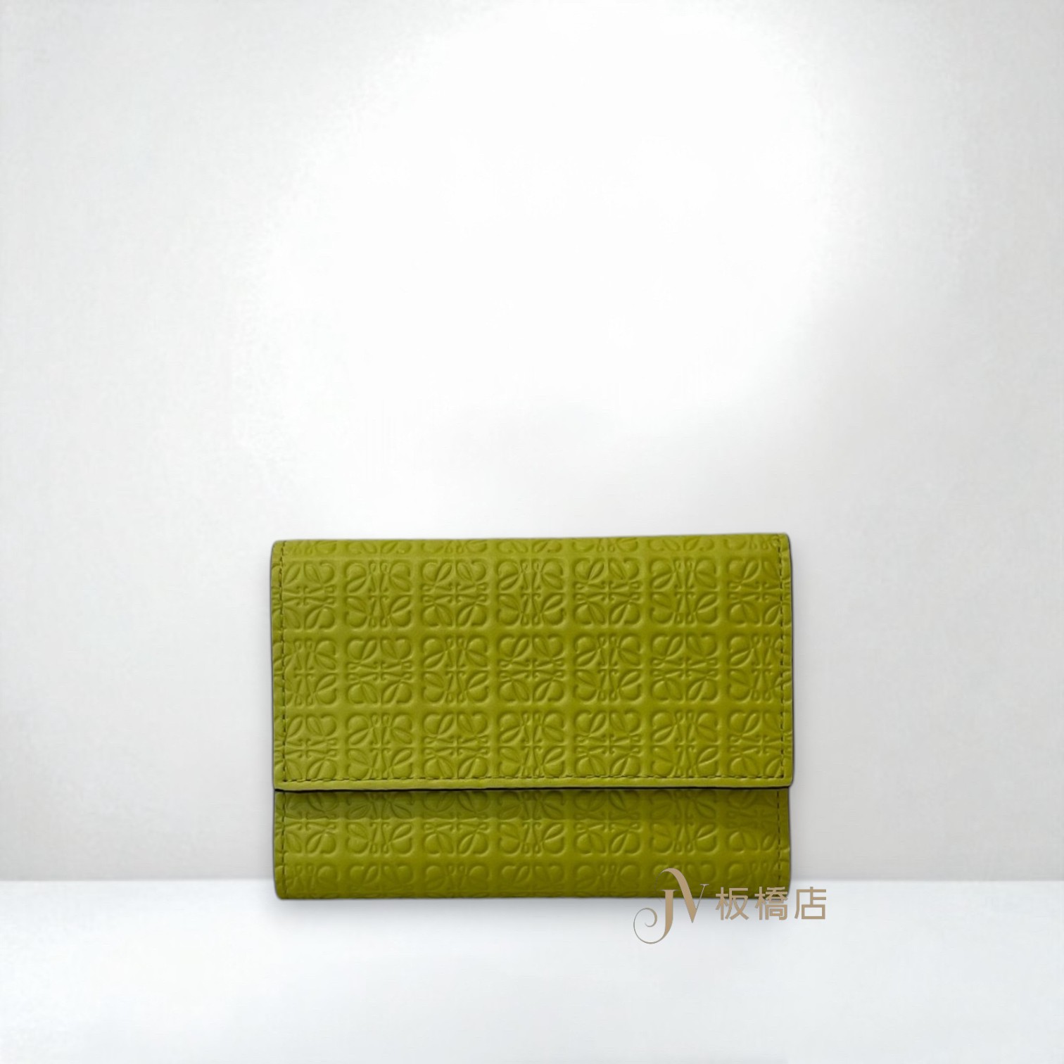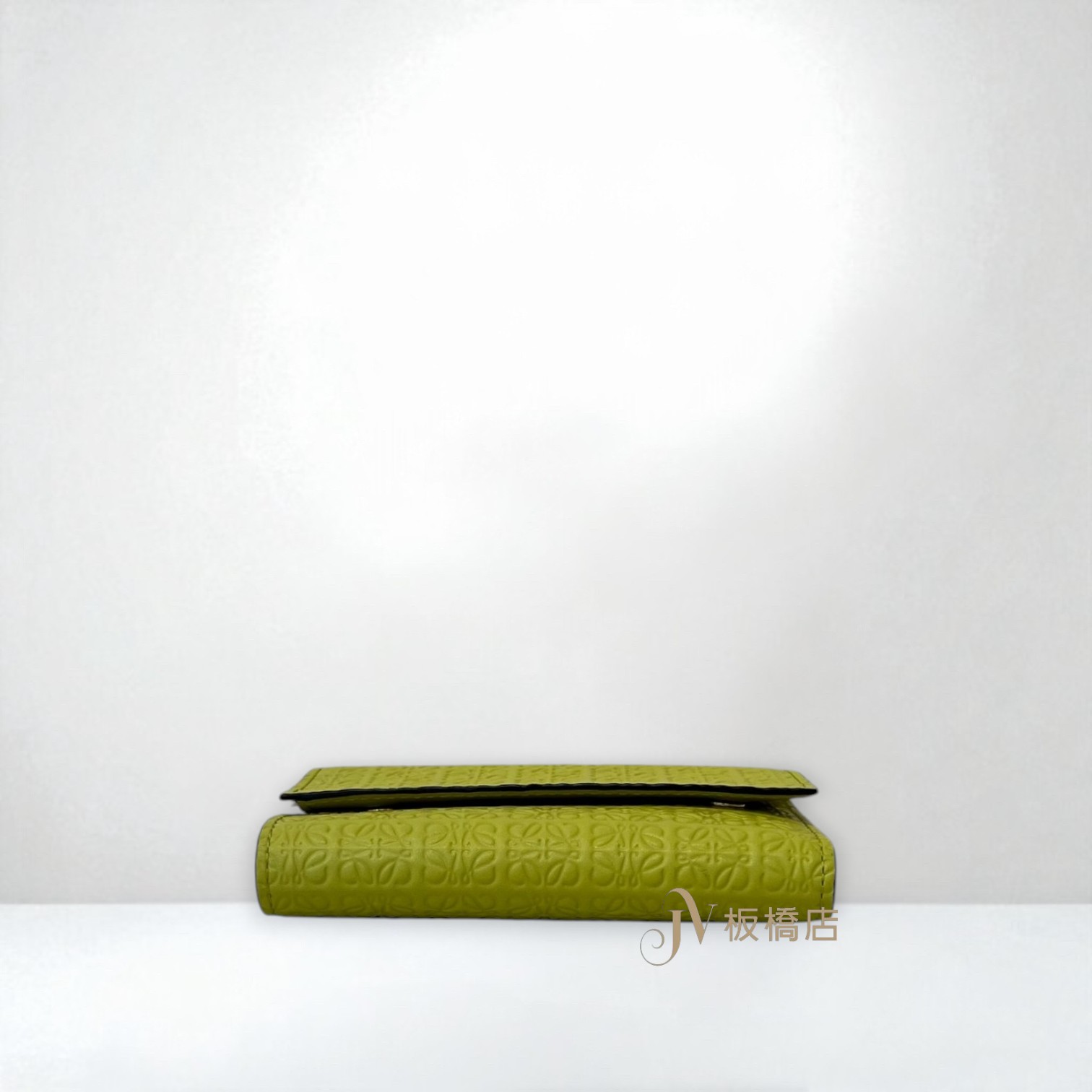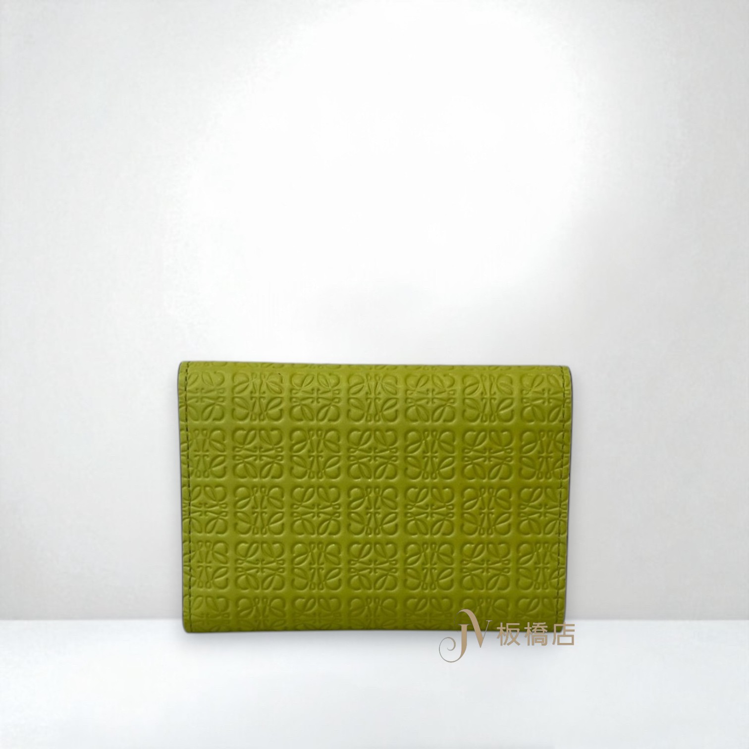JS1046 LOEWE 皮夾 滿版壓印LOGO牛油果綠三折短夾 (板橋店)