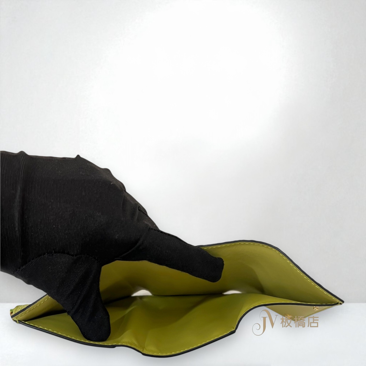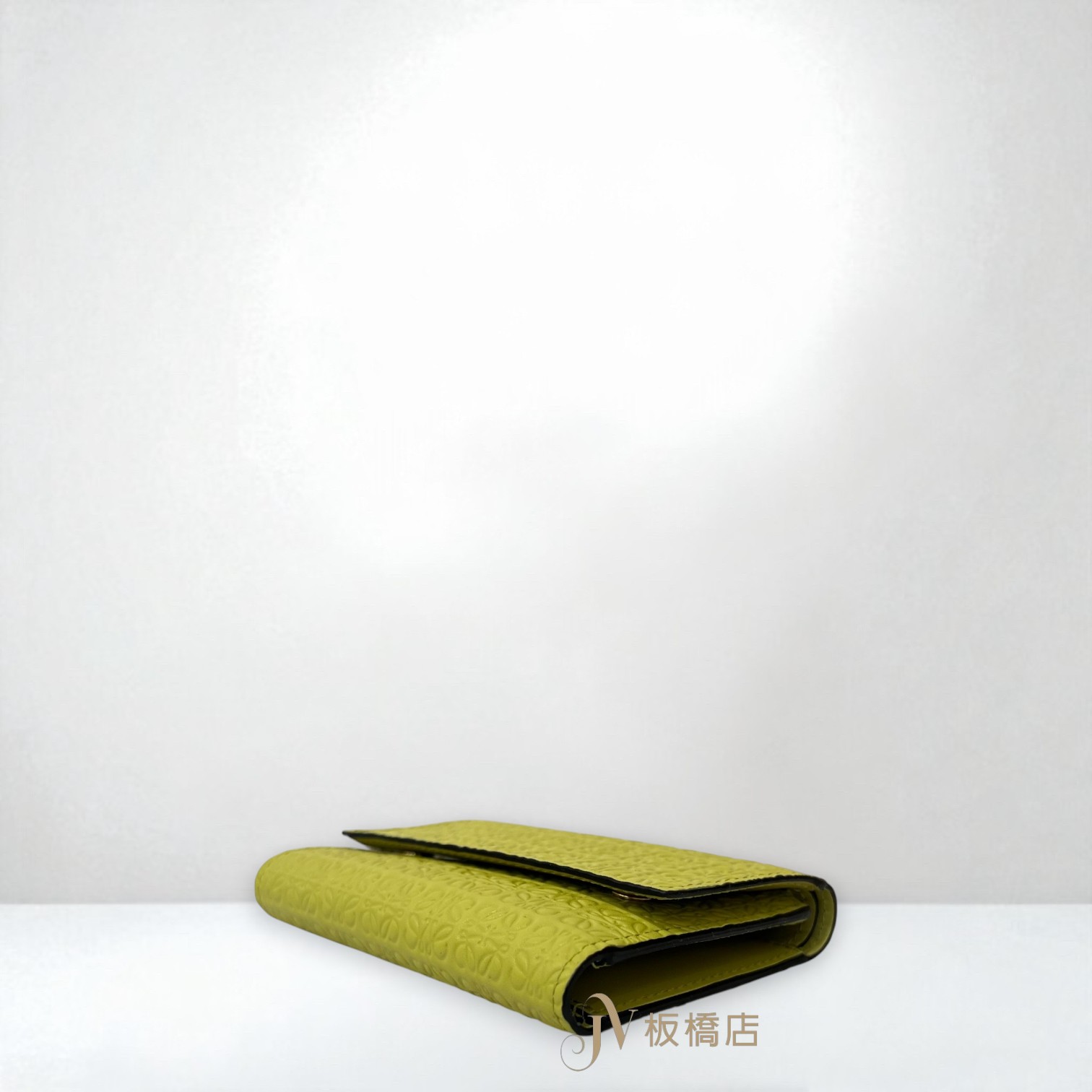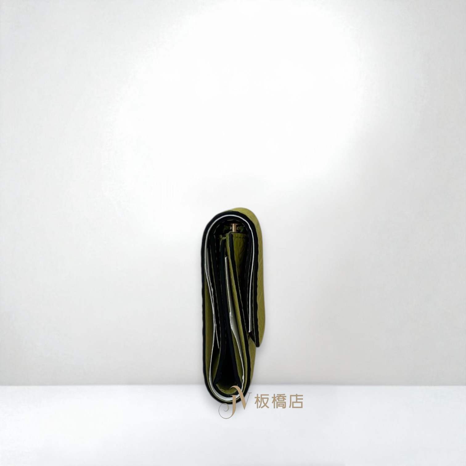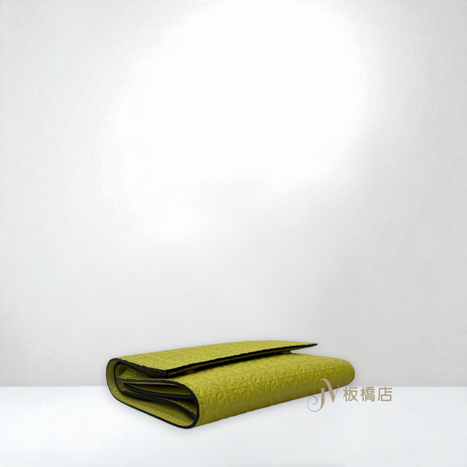 JS1046 LOEWE 皮夾 滿版壓印LOGO牛油果綠三折短夾 (板橋店)