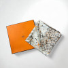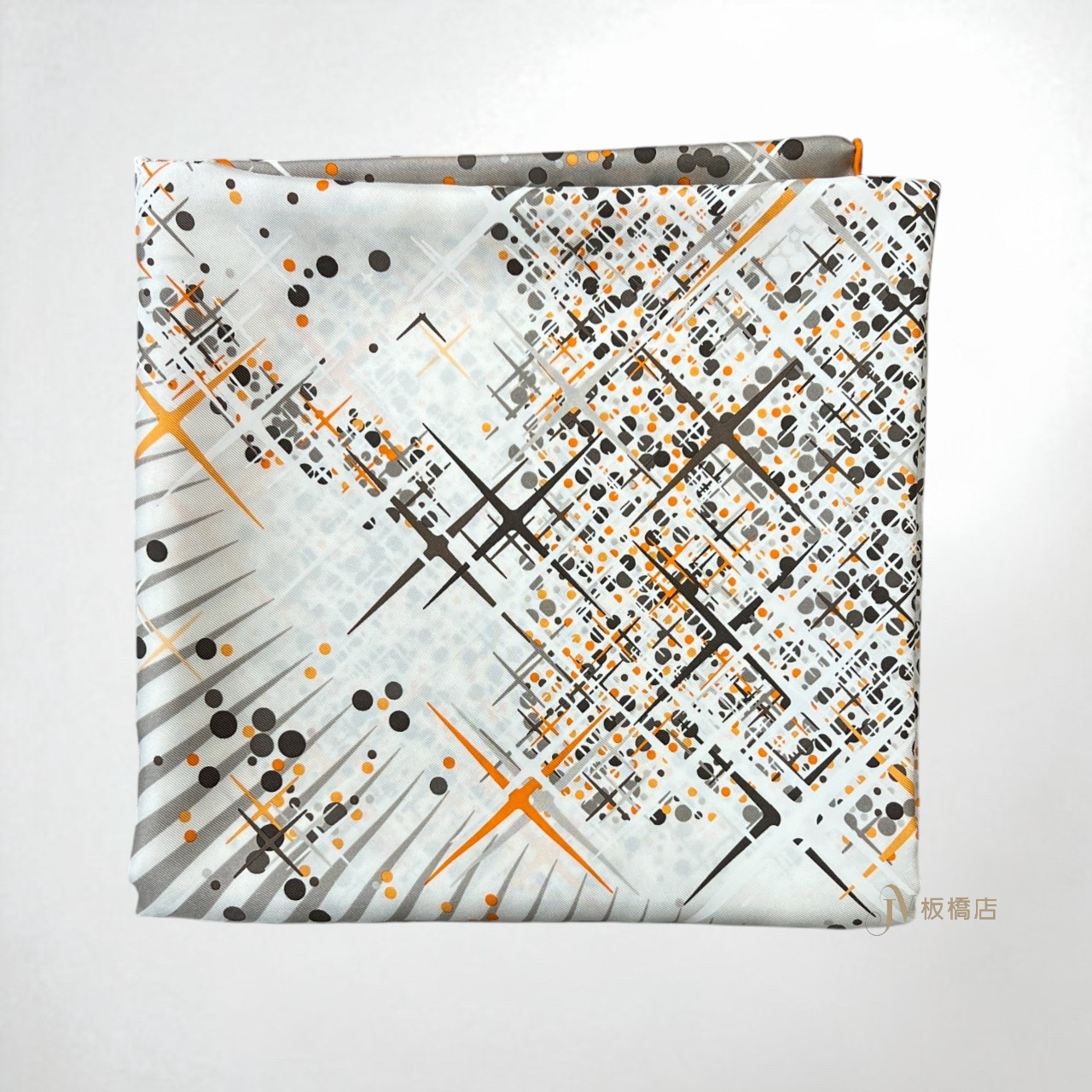 JS1048 Hermes絲巾 灰底橘邊點點十字光芒方絲巾 90×90 (板橋店)