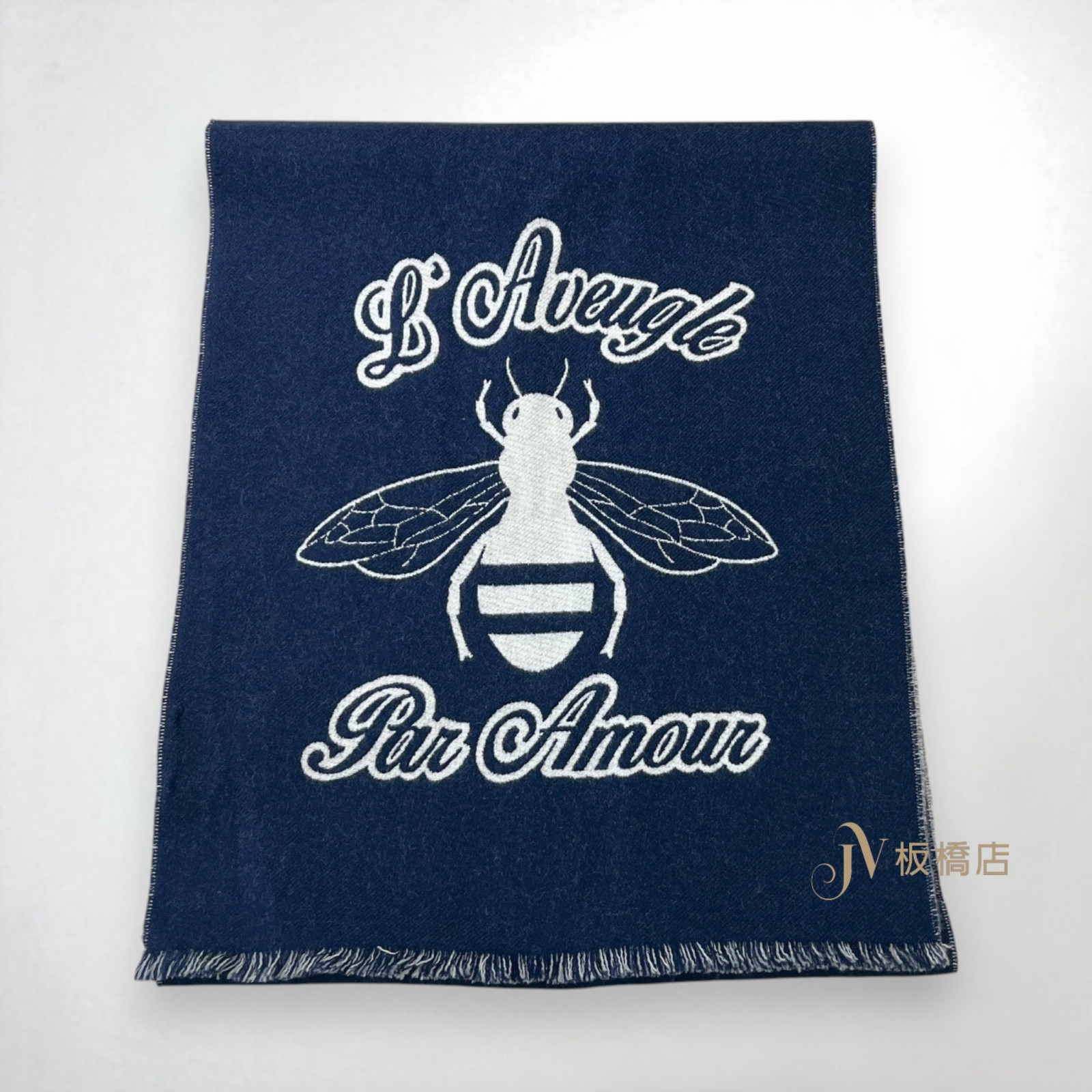 JS1051 GUCCI圍巾 深藍拼米白蜜蜂羊毛圍巾 (板橋店)