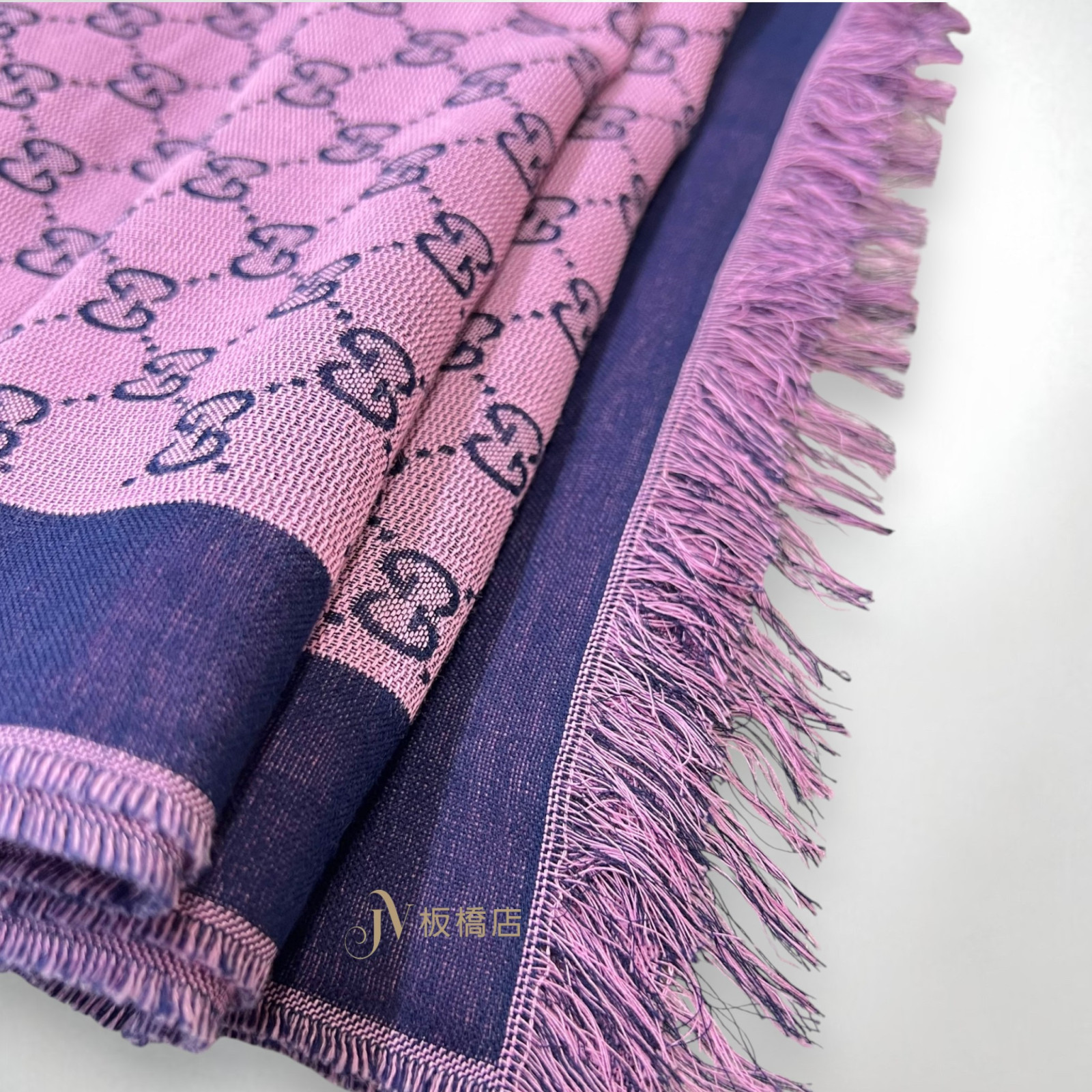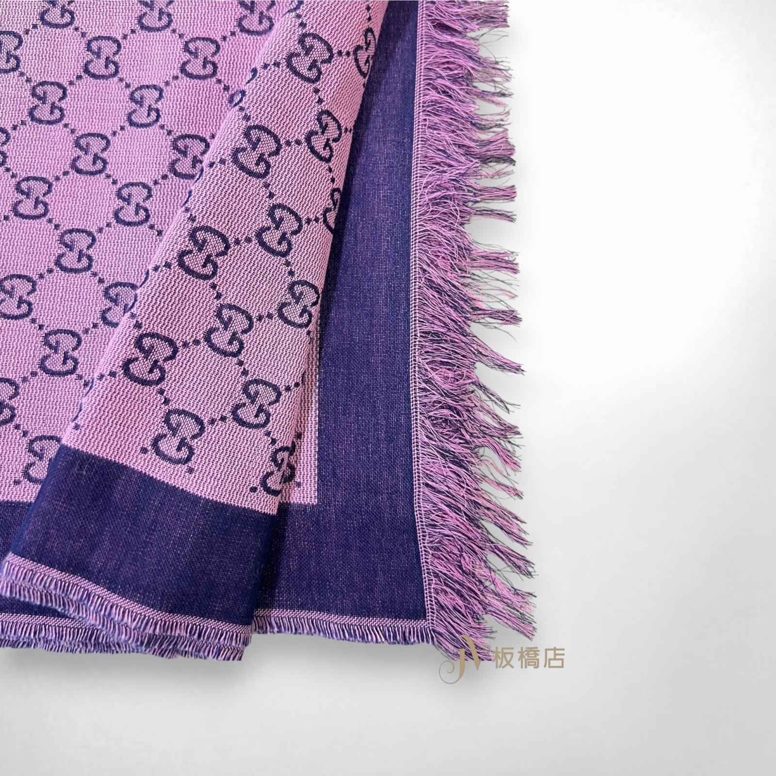 JS1057 Gucci圍巾 粉紫色GG緹花100%棉圍巾 (板橋店)