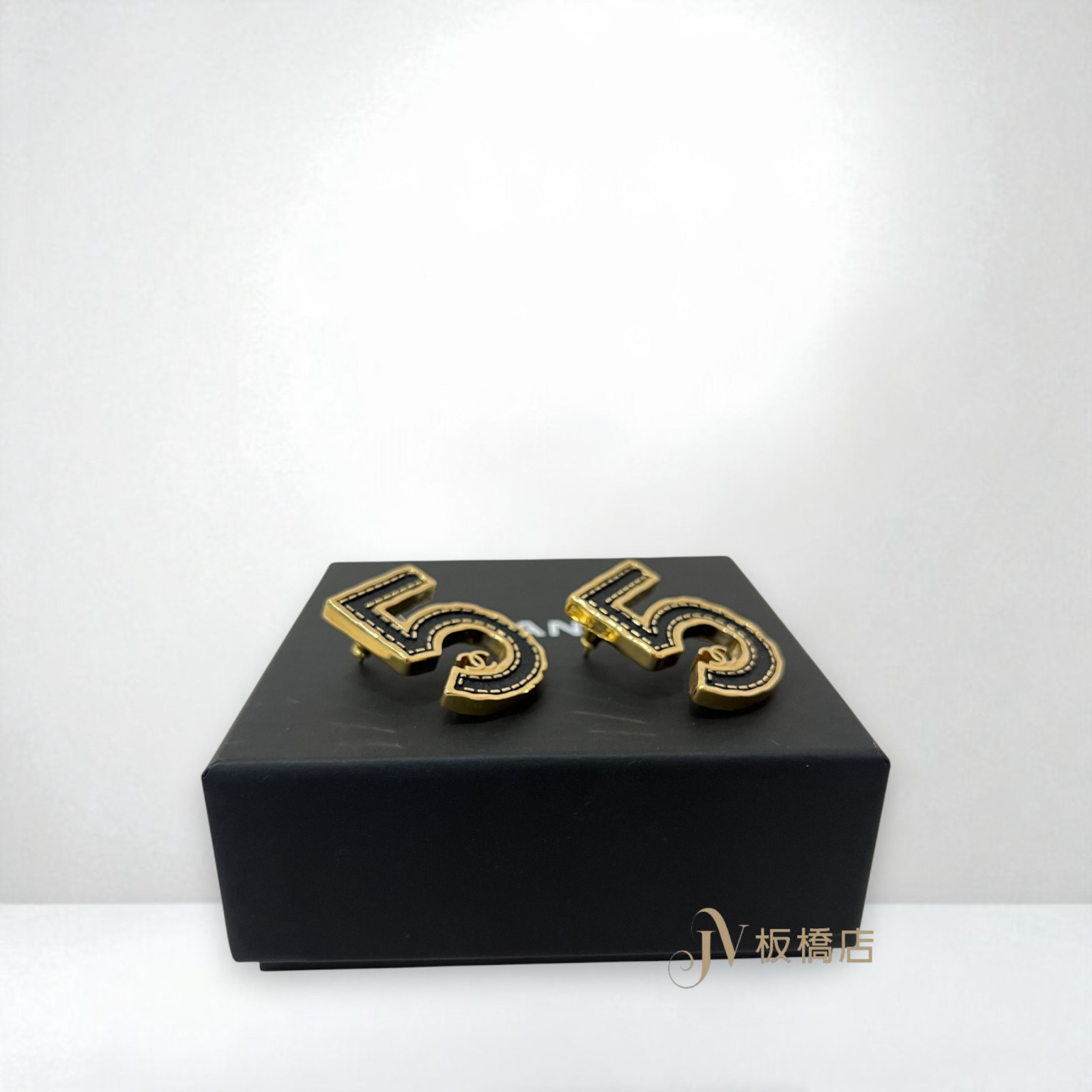 JS1061 CHANEL耳環 黑金NO.5小雙C耳環/aba836 (板橋店)