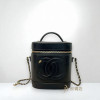 JS1118 CHANEL包包 黑色羊皮淡金釦提把斜背化妝盒 AS0323 (板橋店)