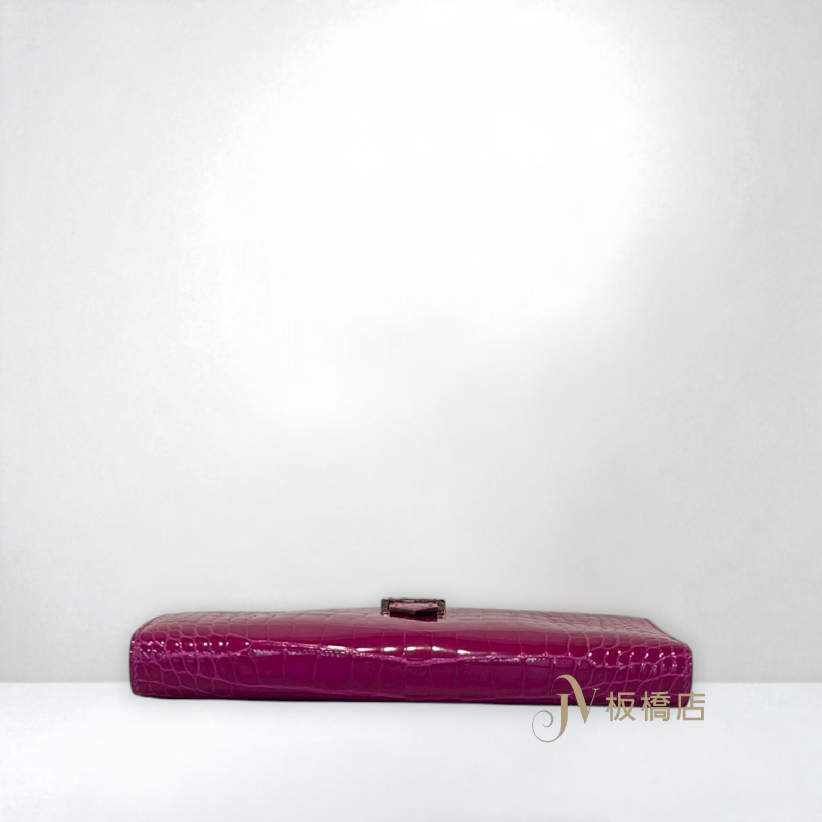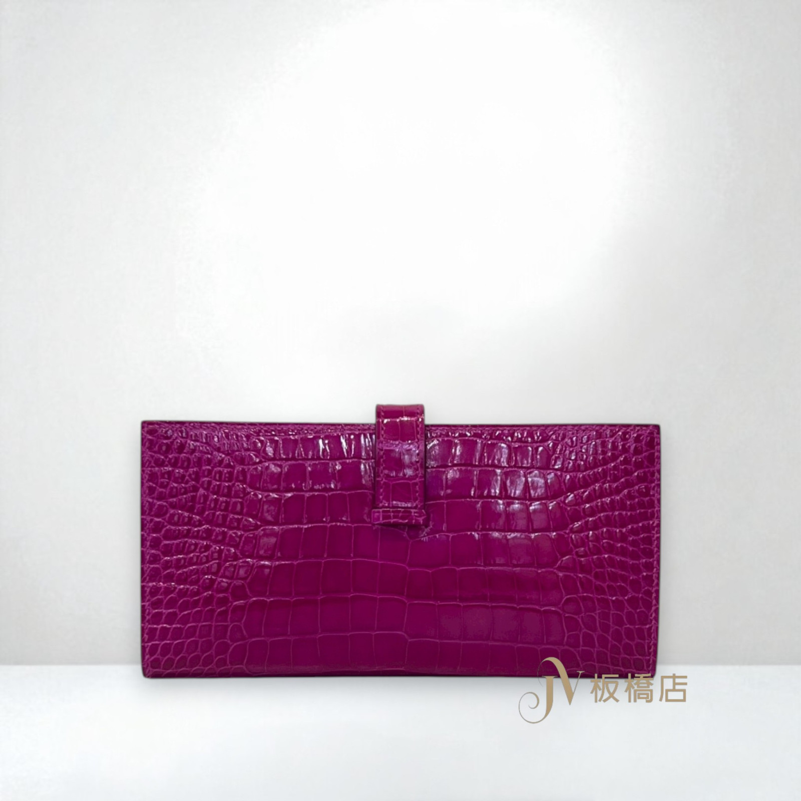 路徑: 首頁 / 精品賣場 / Hermes / Hermes-錢包及小型皮件 / JS1130 HERMES皮夾 J5天方夜譚紫銀釦亮面方框鱷BEARN長夾 (板橋店)...