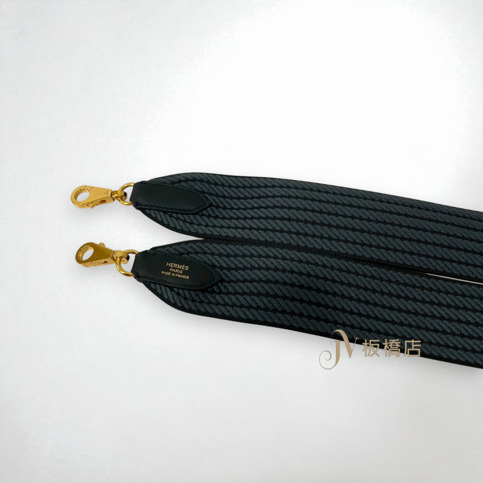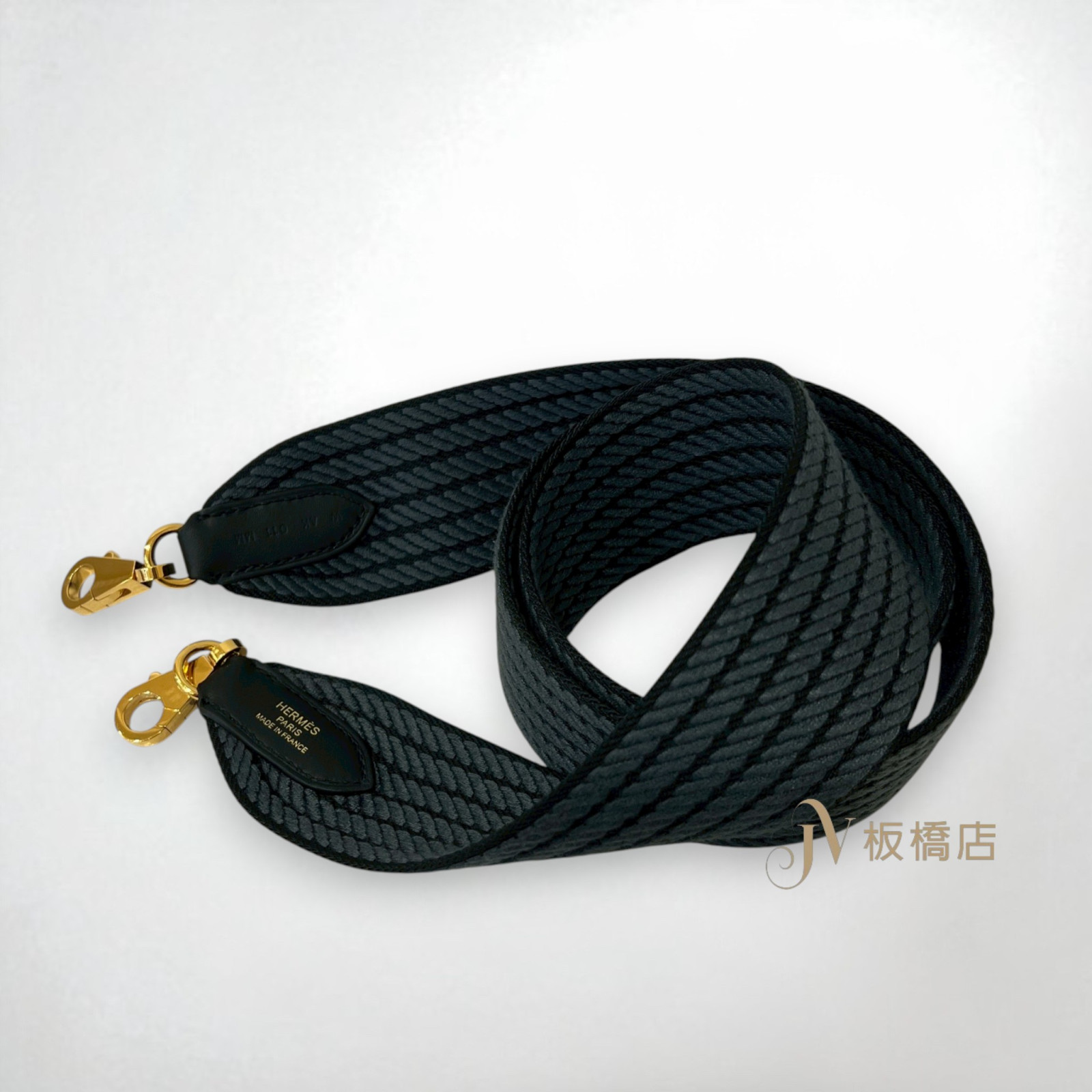 JS1135 HERMES背帶 黑灰混織配黑金寬版背帶 (板橋店)