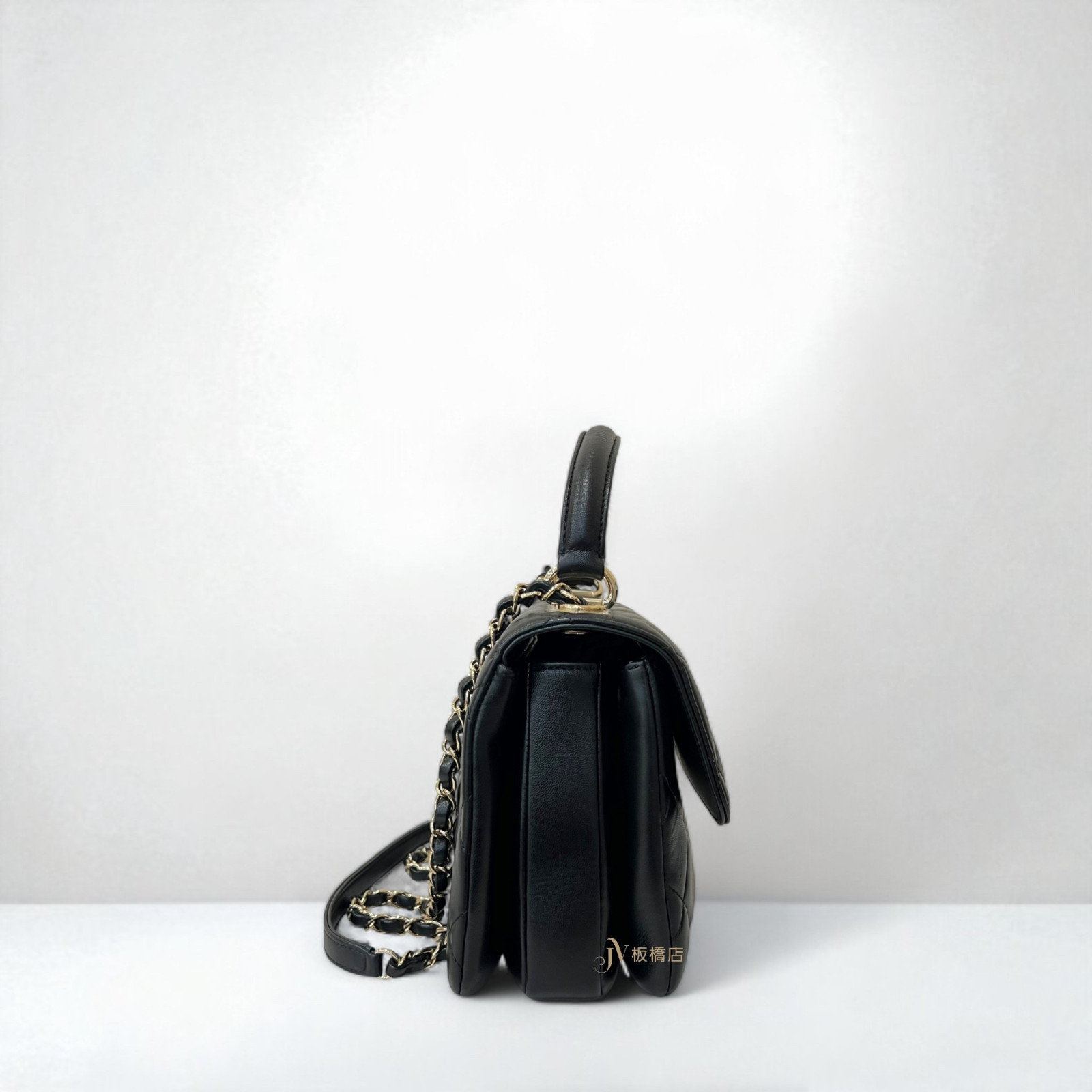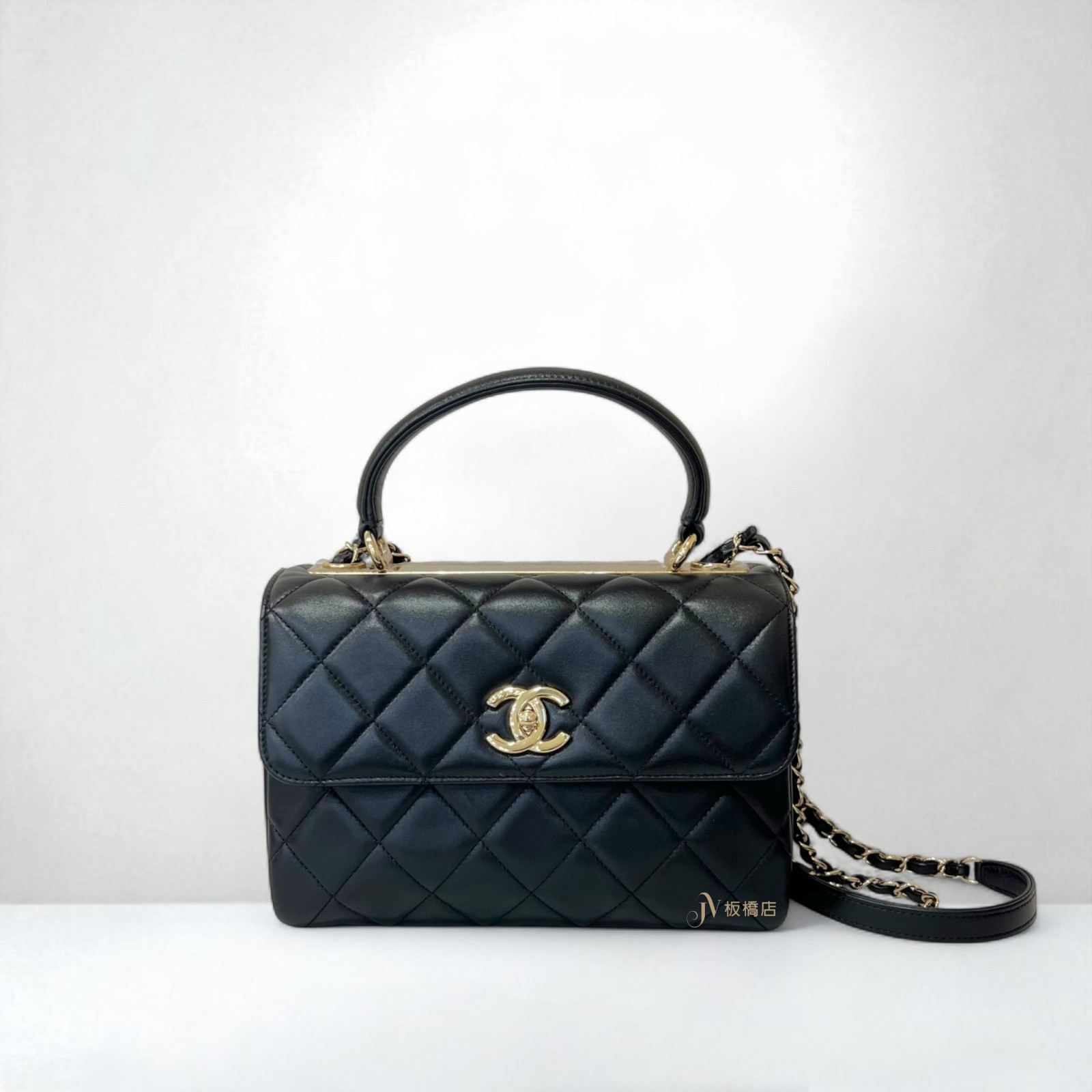 JS1165 CHANEL包包 黑淡金Trendy cc小羊皮手提鏈包 (板橋店)