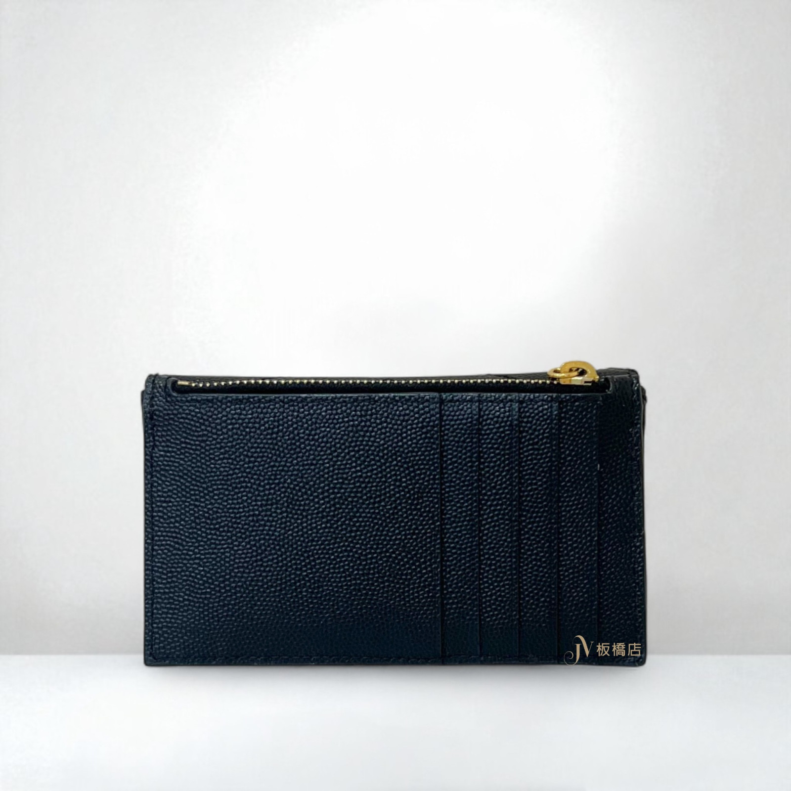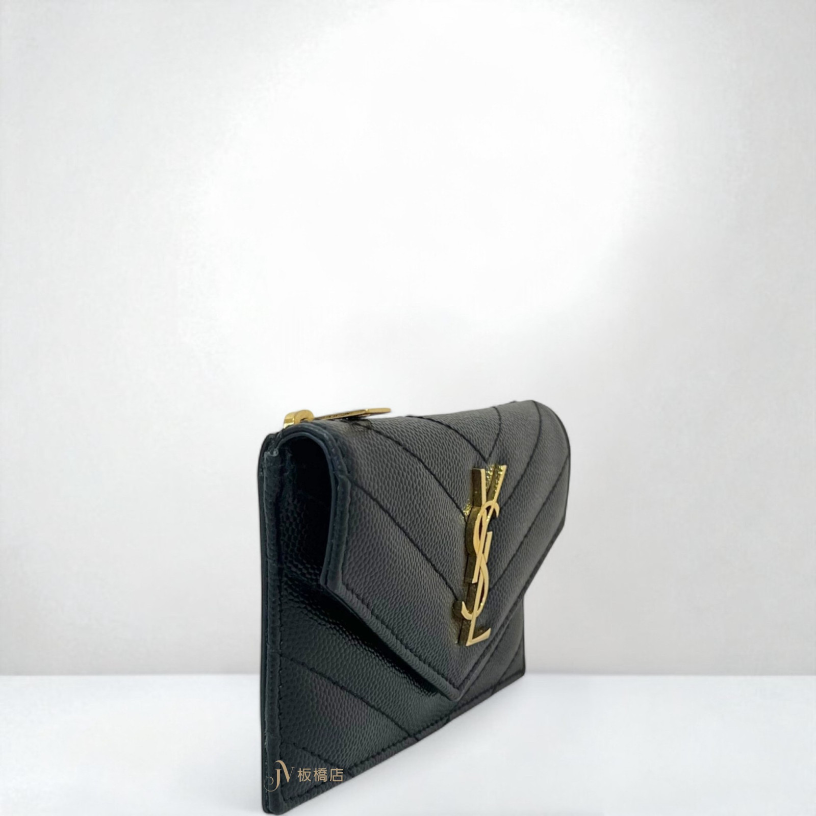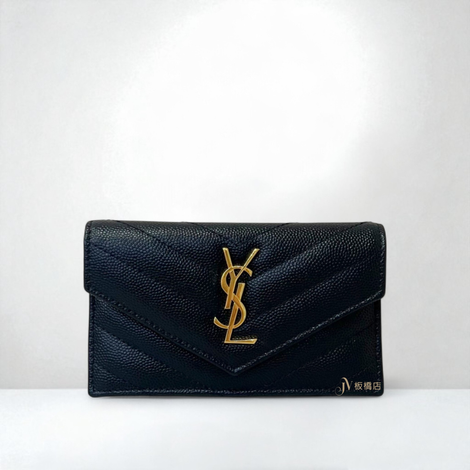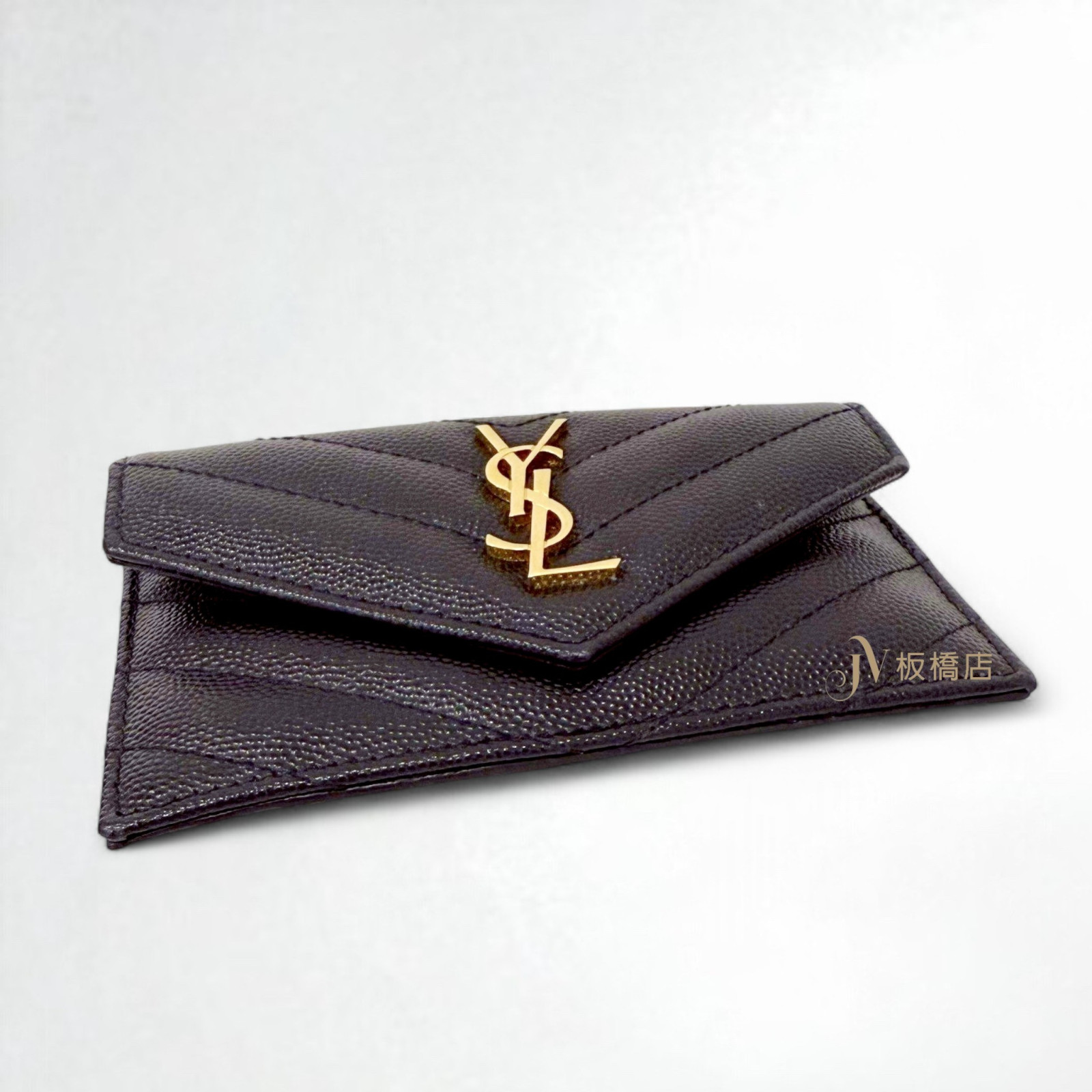 JS1166 YSL卡包 黑荔枝牛皮金釦5卡信封拉鍊零錢卡包612808 (板橋店)