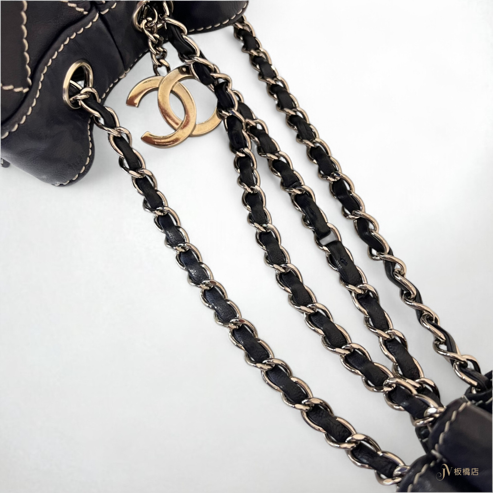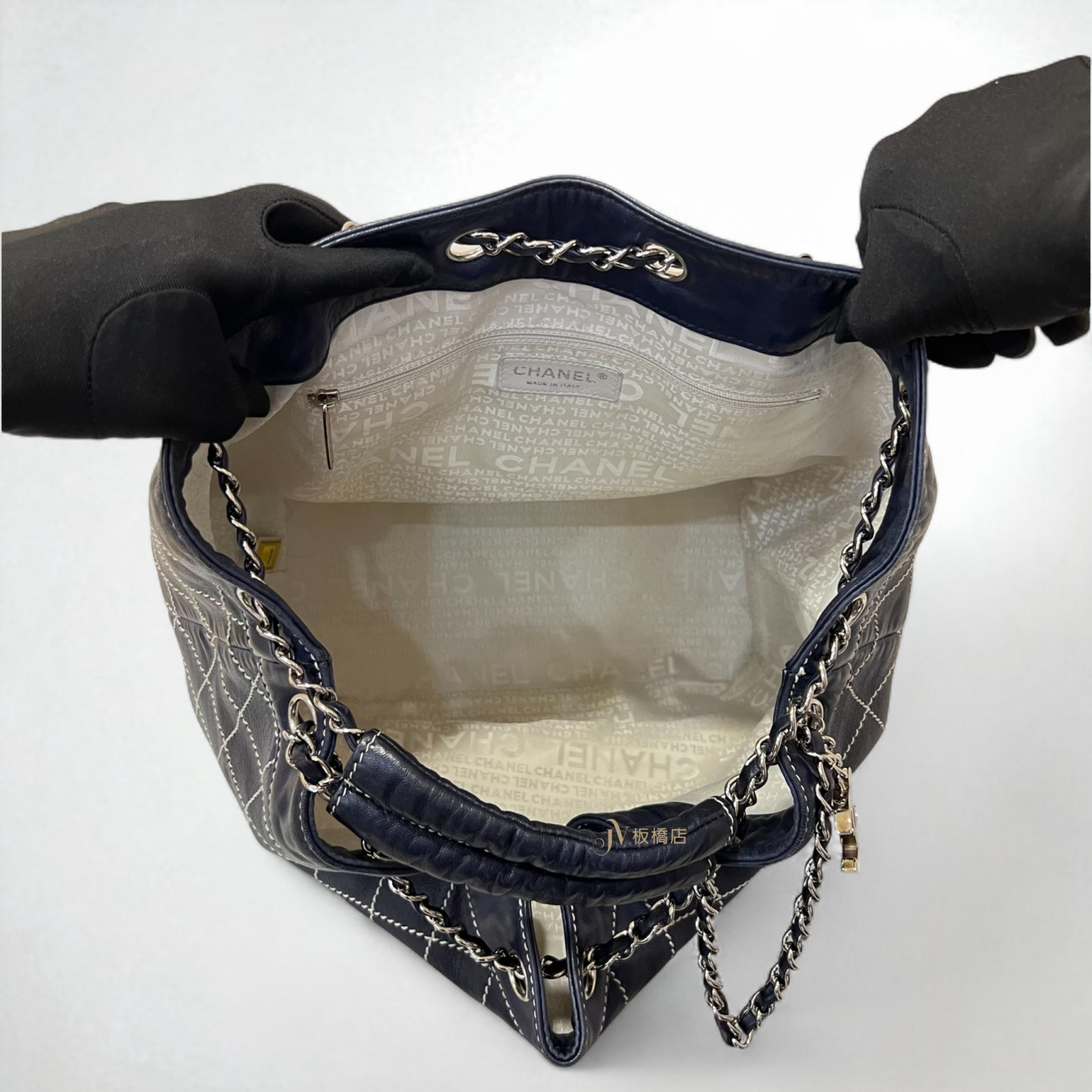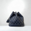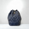 JS1169 CHANEL包包 藍羊皮白線菱格紋水桶包 (板橋店)