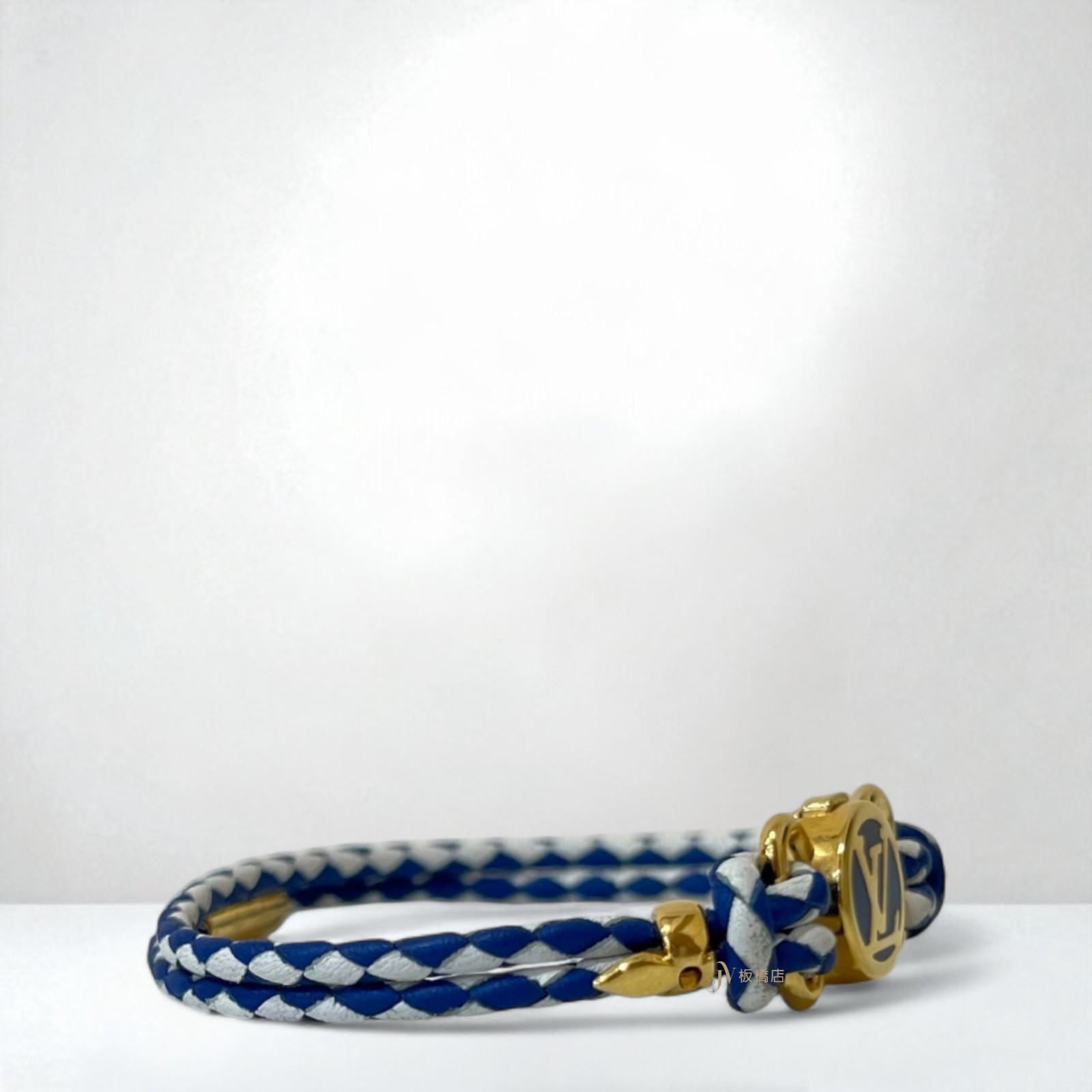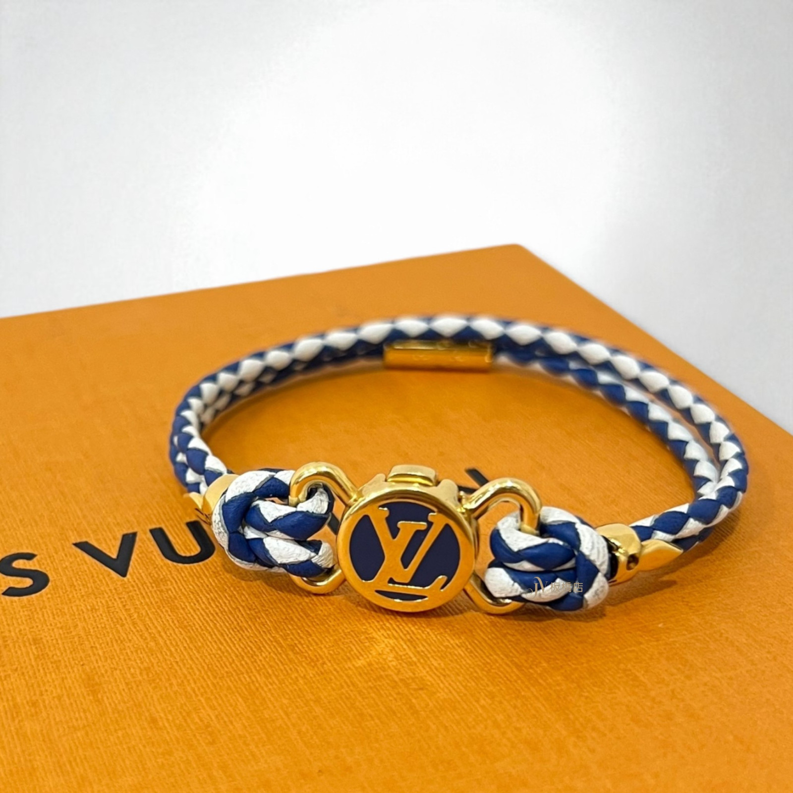 JS1186 LV手鍊 Clic It藍白編織金色琺瑯扣手鍊 M8248F (板橋店)