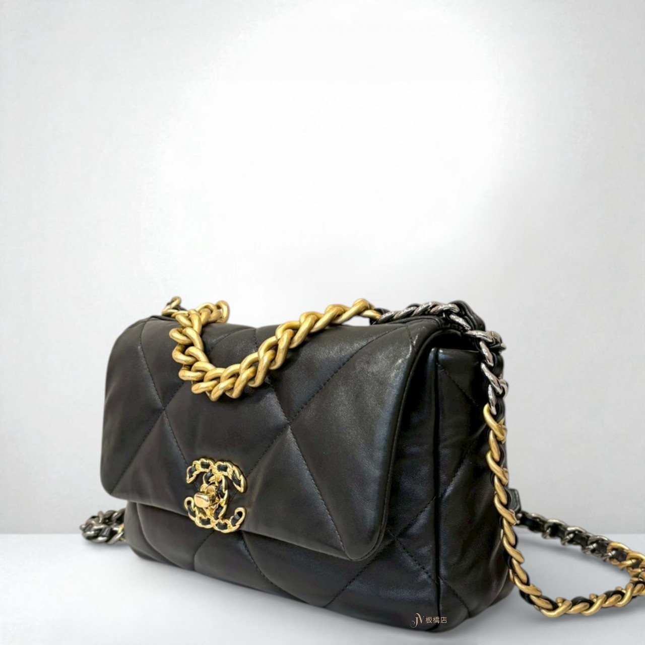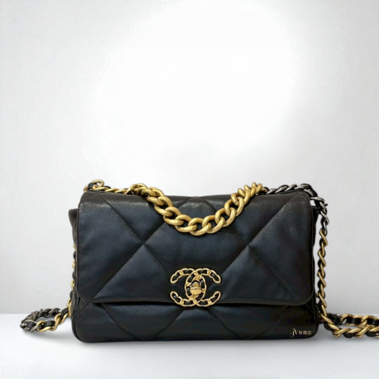 JS1244 Chanel包包 黑金羊皮19系列小號手提斜背包AS1160 (板橋店)