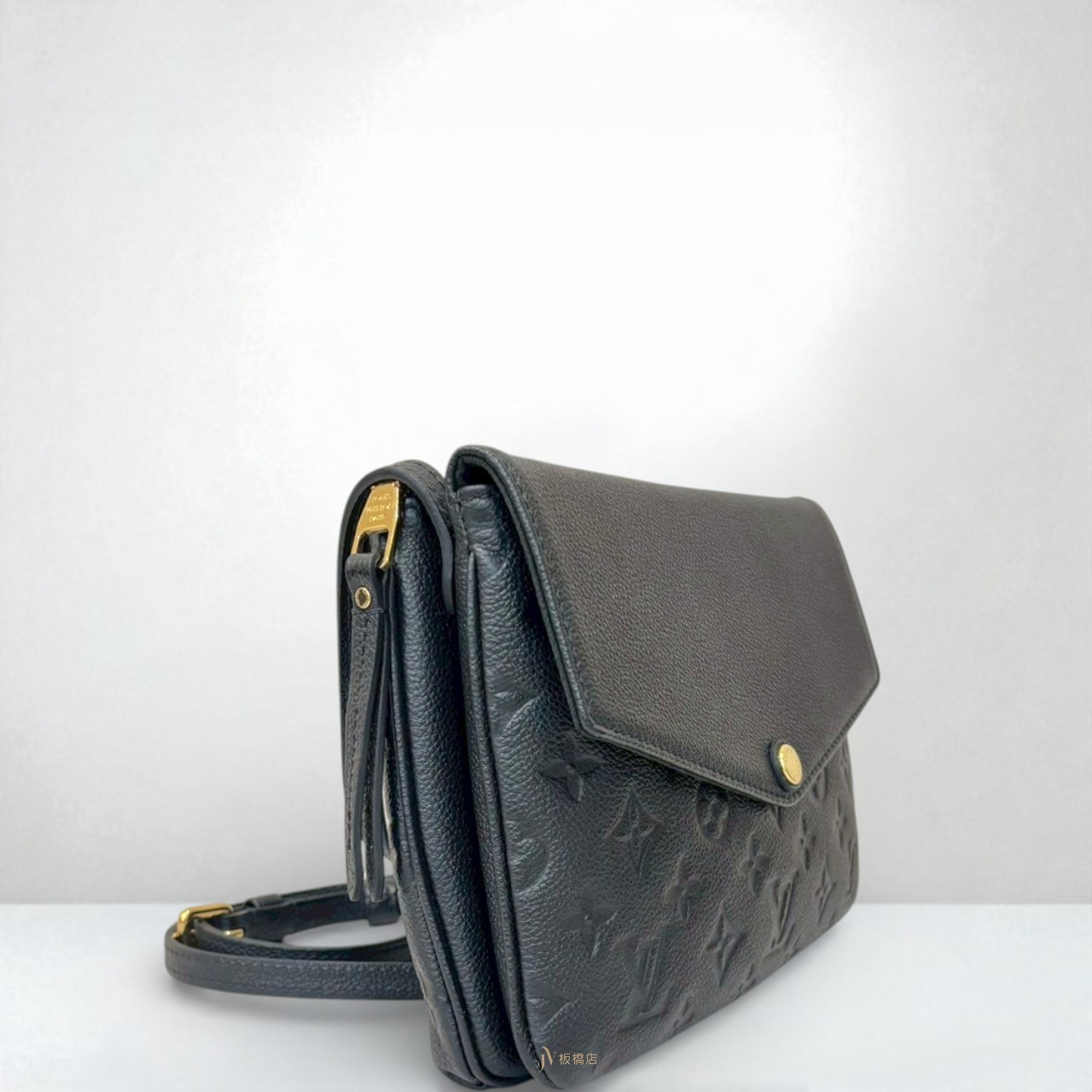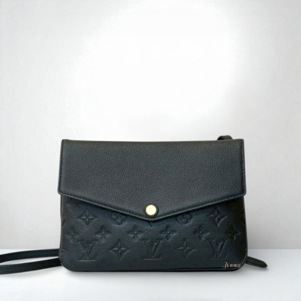 路徑: 首頁 / 精品賣場 / LV / LV-包款 / JS1248 LV包包 黑牛皮壓紋前信封蓋拉鍊側背包 M50258 (板橋店)...