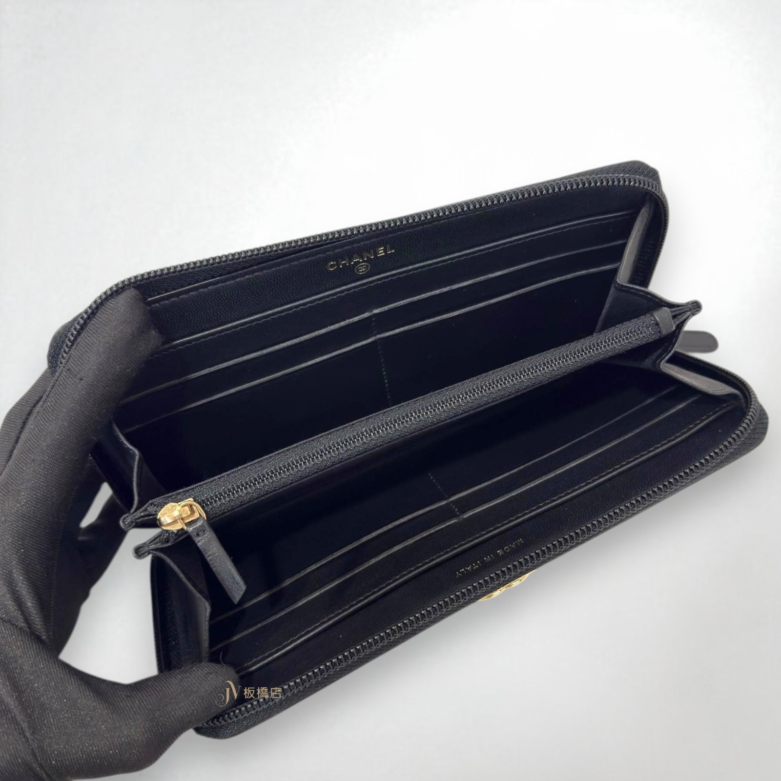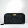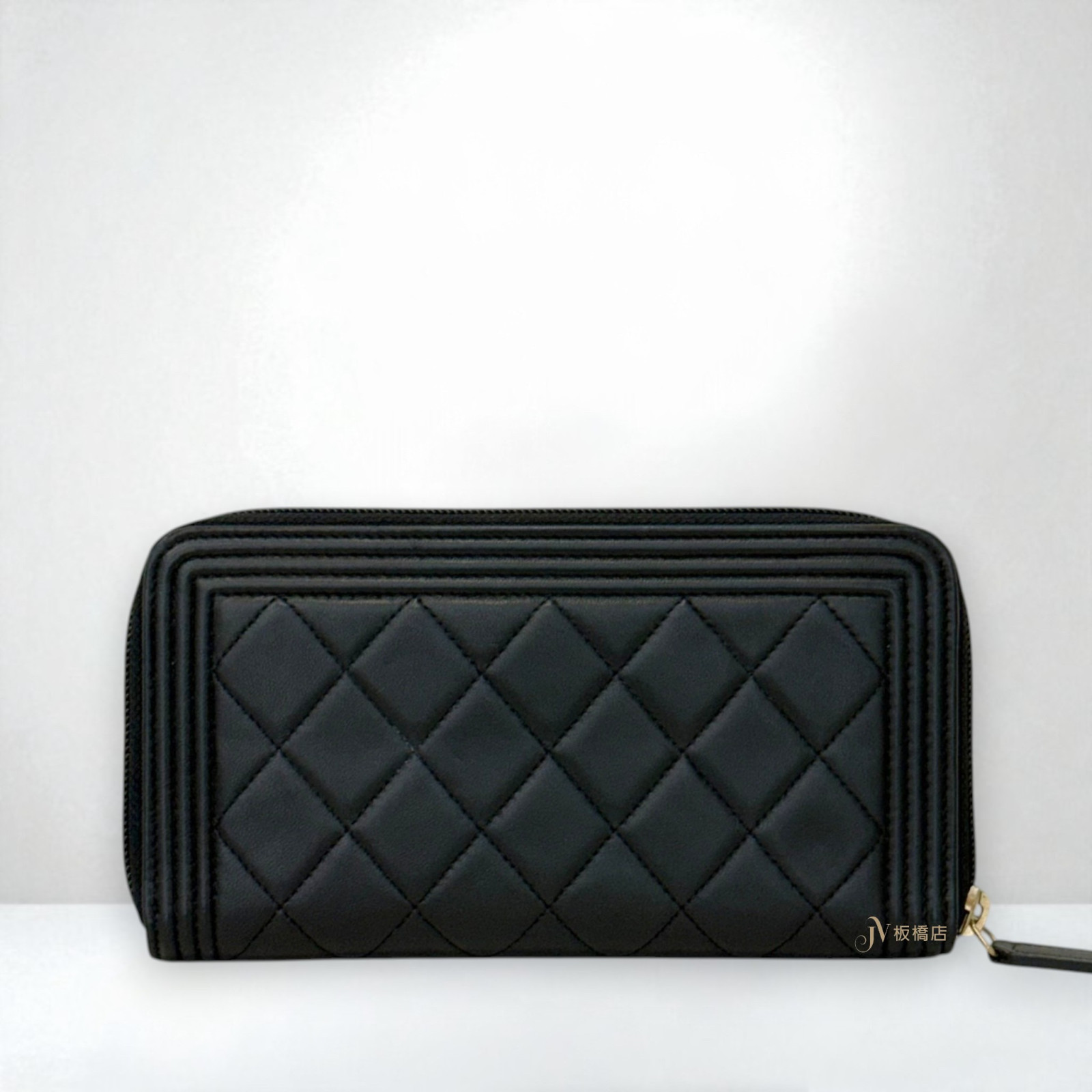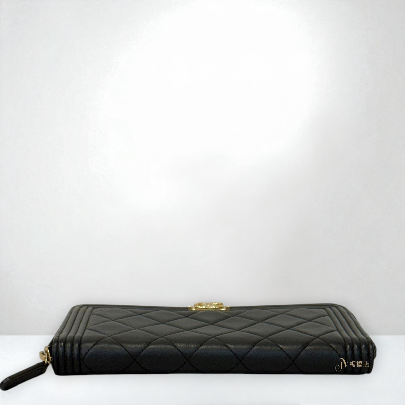 JS1324 CHANEL皮夾 黑羊皮金釦BOY系列拉鍊長夾A80288 (板橋店)