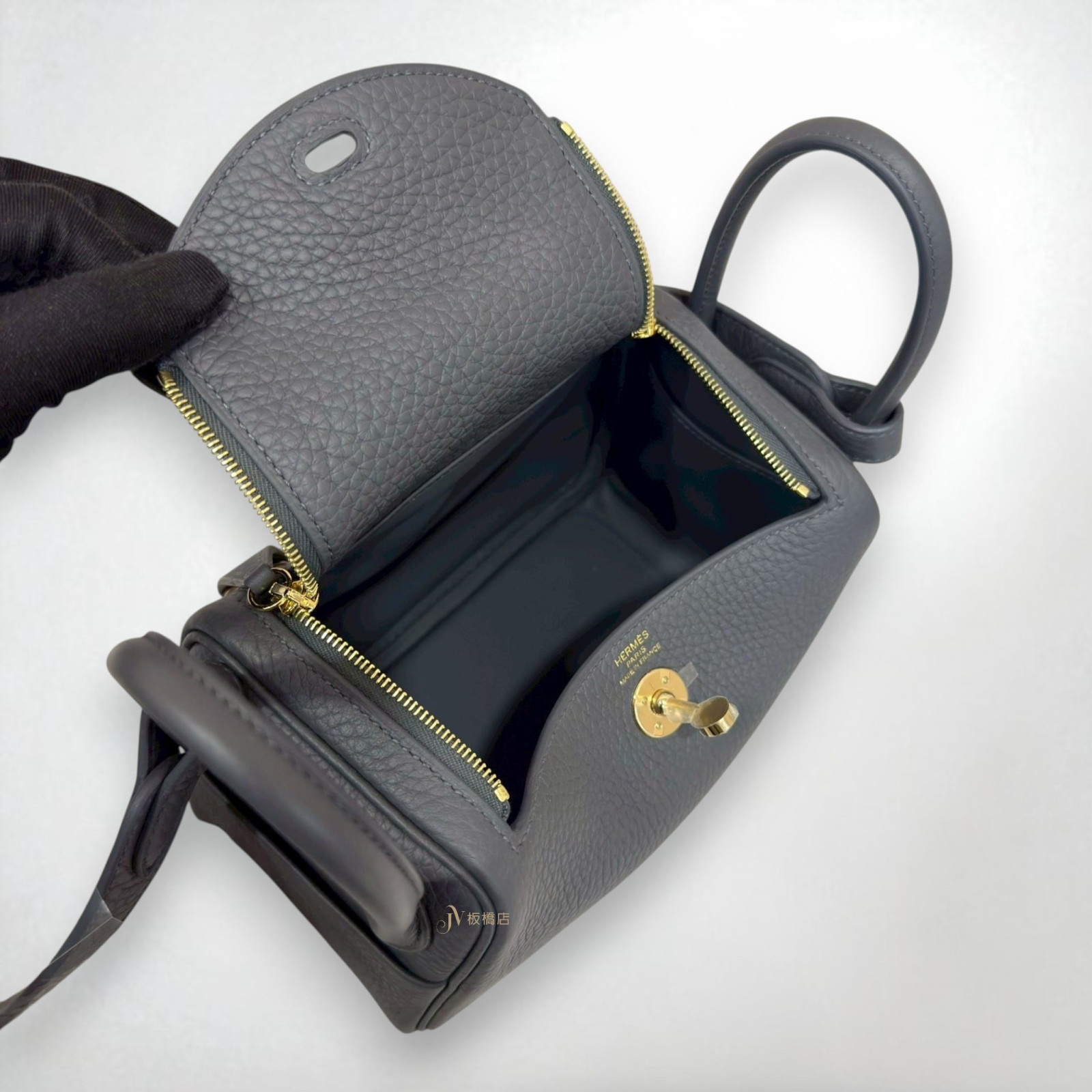 JY0264 HERMES包包 85岩板灰TC皮金釦MINI LINDY II (板橋店)